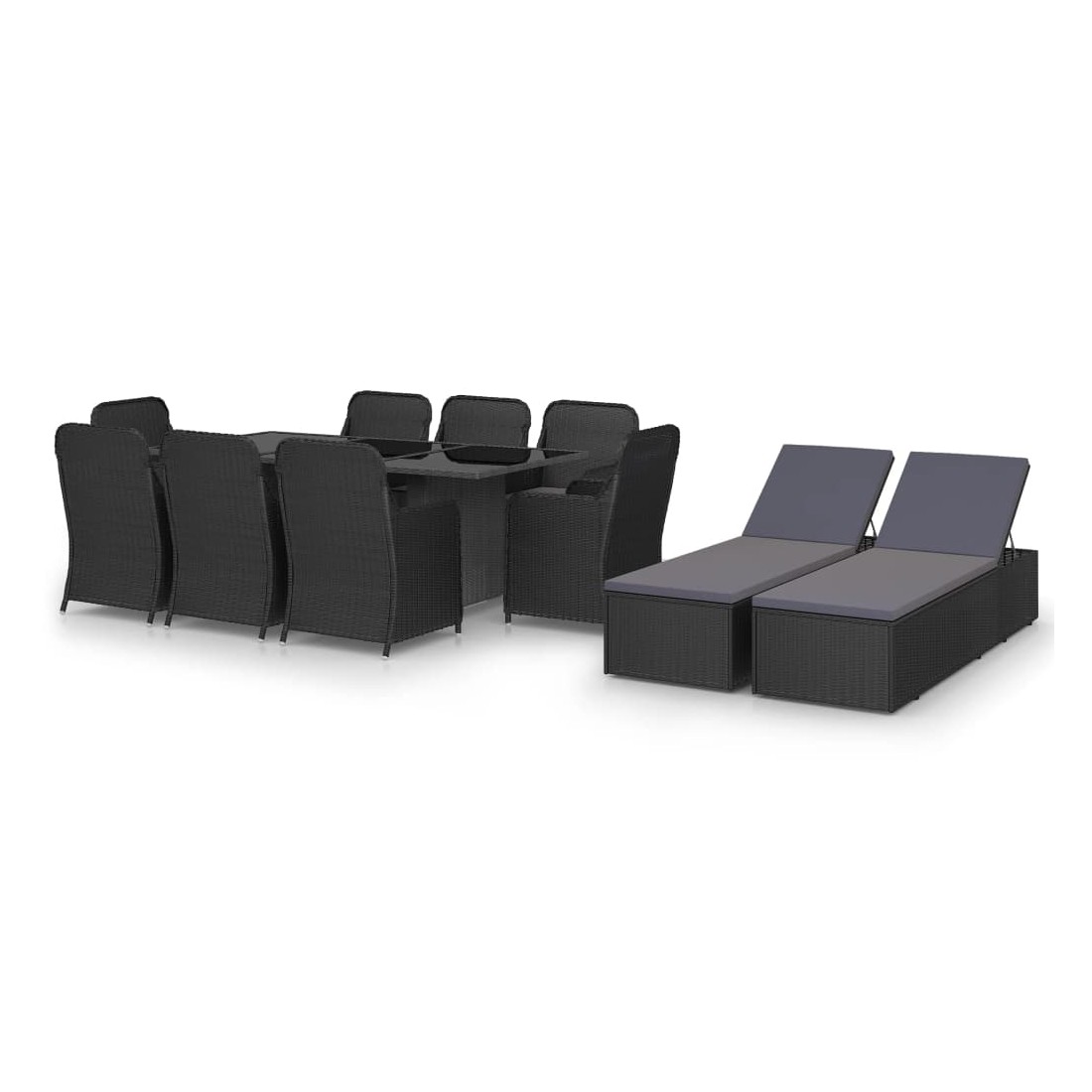 Ensemble à dîner de jardin 11 pcs Résine tressée Noir