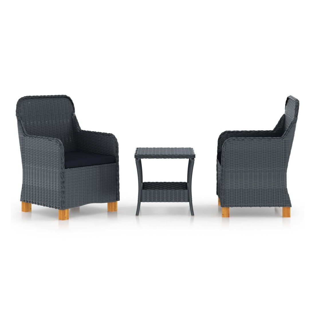 Cet ensemble de salon de jardin en résine tressée est un excellent choix pour discuter avec la famille et les amis ou tout simplement profiter du soleil apaisant dans votre espace de vie en plein air ! Les chaises d’extérieur et la table à thé, dotées d’un cadre en acier enduit de poudre recouvert de résine tressée ronde, sont robustes et faciles à nettoyer. Les coussins bien rembourrés ajoutent un confort supplémentaire lors de votre temps de détente. La housse de coussin est équipée d’une fermeture éclair, amovible et lavable. De plus, les pieds en bois d’acacia massif ajoutent à la robustesse et à la stabilité des fauteuils. En outre, le dessus de table solide est idéal pour placer ou afficher vos différents essentiels. L’ensemble de salon est facile à déplacer grâce à sa construction légère. Remarque importante : Nous vous recommandons de couvrir l'ensemble pendant la pluie, la neige et le gel pour une utilisation durable.