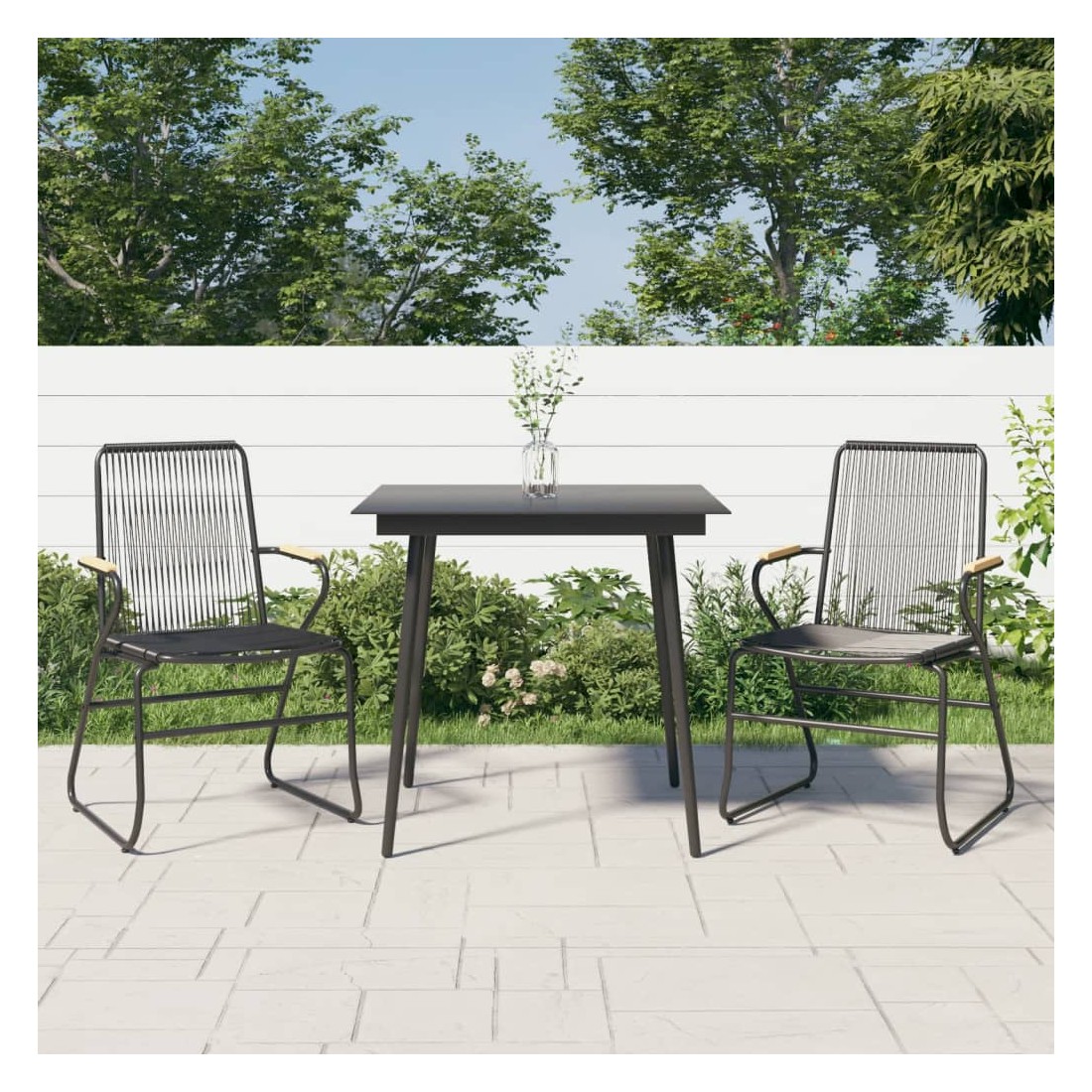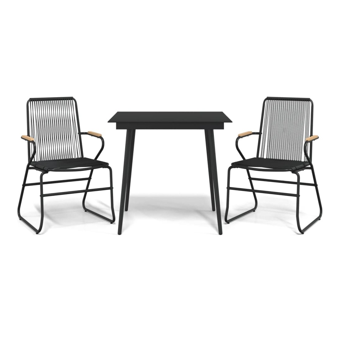 Ensemble à manger de jardin 3 pcs noir rotin PVC