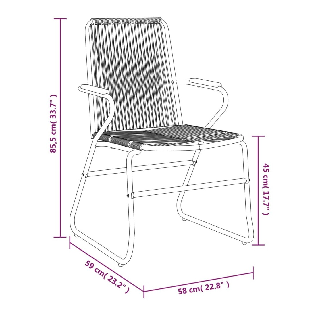 Profitez d'un moment de café confortable dans votre espace extérieur avec cet ensemble à manger de jardin ! Cet ensemble à manger est un complément parfait à votre jardin et à votre terrasse, créant une impression durable ! Rotin durable en PVC : le rotin PVC est une option plus solide et plus durable que le rotin naturel. Le PVC est connu pour ses qualités de résistance aux intempéries comme la protection contre les rayons UV et la résistance à l'humidité.Cadre robuste : le cadre en acier de l'ensemble à manger de jardin assure robustesse et stabilité.Dessus de table robuste : le dessus de table robuste de la table à manger est parfait pour placer des repas, des boissons, des vases, des bols de fruits ou d'autres objets décoratifs.Expérience d'assise confortable : avec un dossier et des accoudoirs, le siège de jardin vous permet de vous asseoir confortablement après une longue journée. Remarque :Pour que vos meubles d'extérieur restent beaux, nous vous recommandons de les protéger avec une housse imperméable.