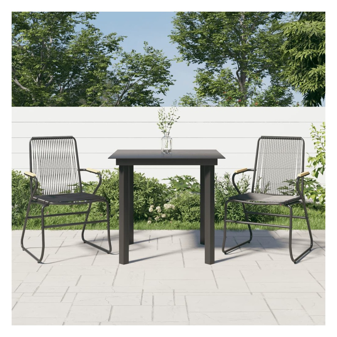 Profitez d'un moment de café confortable dans votre espace extérieur avec cet ensemble à manger de jardin ! Cet ensemble à manger est un complément parfait à votre jardin et à votre terrasse, créant une impression durable ! Rotin durable en PVC : le rotin PVC est une option plus solide et plus durable que le rotin naturel. Le PVC est connu pour ses qualités de résistance aux intempéries comme la protection contre les rayons UV et la résistance à l'humidité.Cadre robuste : le cadre en acier de l'ensemble à manger de jardin assure robustesse et stabilité.Dessus de table robuste : le dessus de table robuste de la table à manger est parfait pour placer des repas, des boissons, des vases, des bols de fruits ou d'autres objets décoratifs.Expérience d'assise confortable : avec un dossier et des accoudoirs, le siège de jardin vous permet de vous asseoir confortablement après une longue journée. Remarque :Pour que vos meubles d'extérieur restent beaux, nous vous recommandons de les protéger avec une housse imperméable.