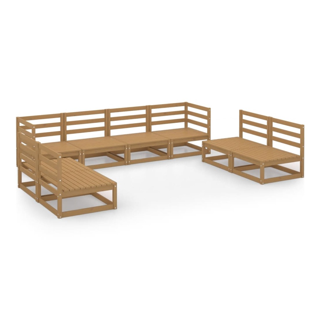 Salon de jardin 8 pcs marron miel bois de pin massif
