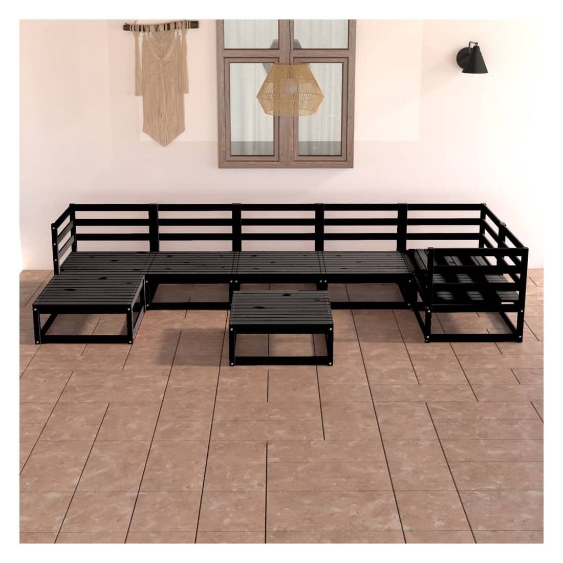 Salon de jardin 8 pcs noir bois de pin massif