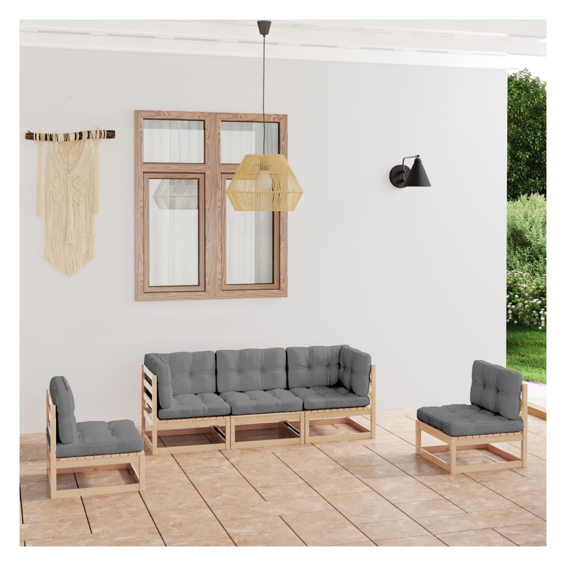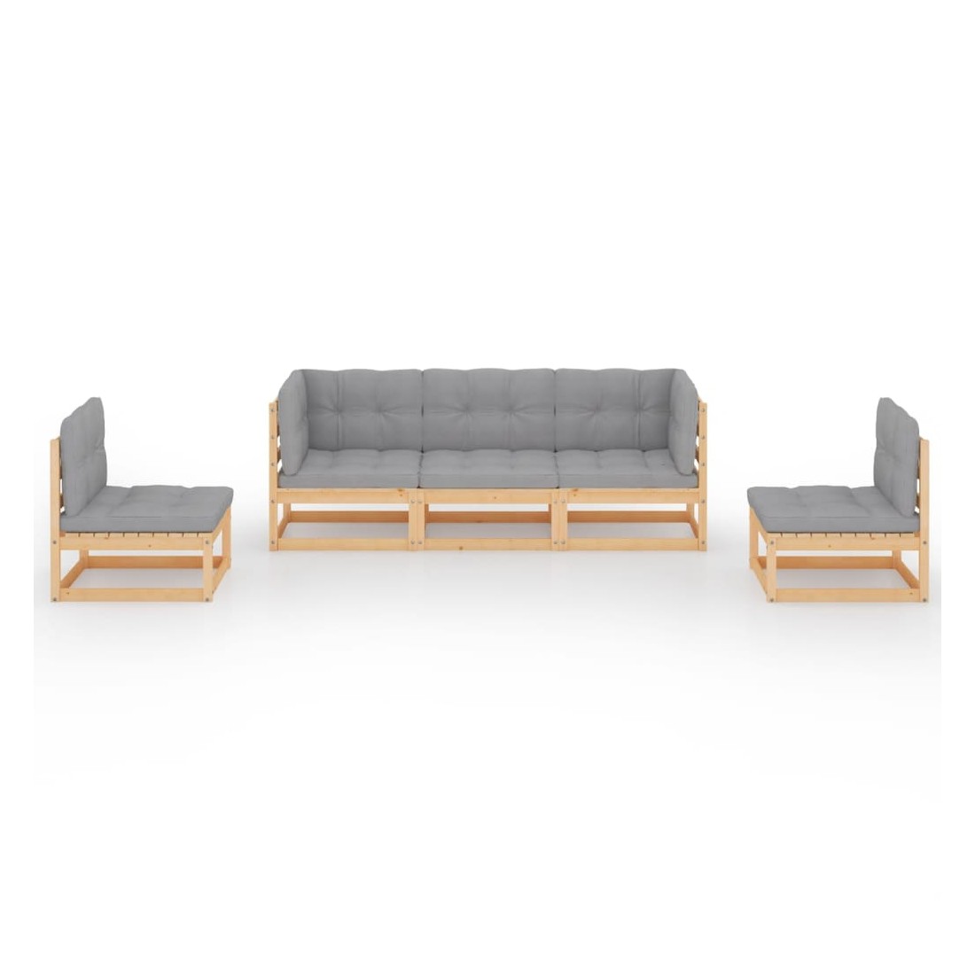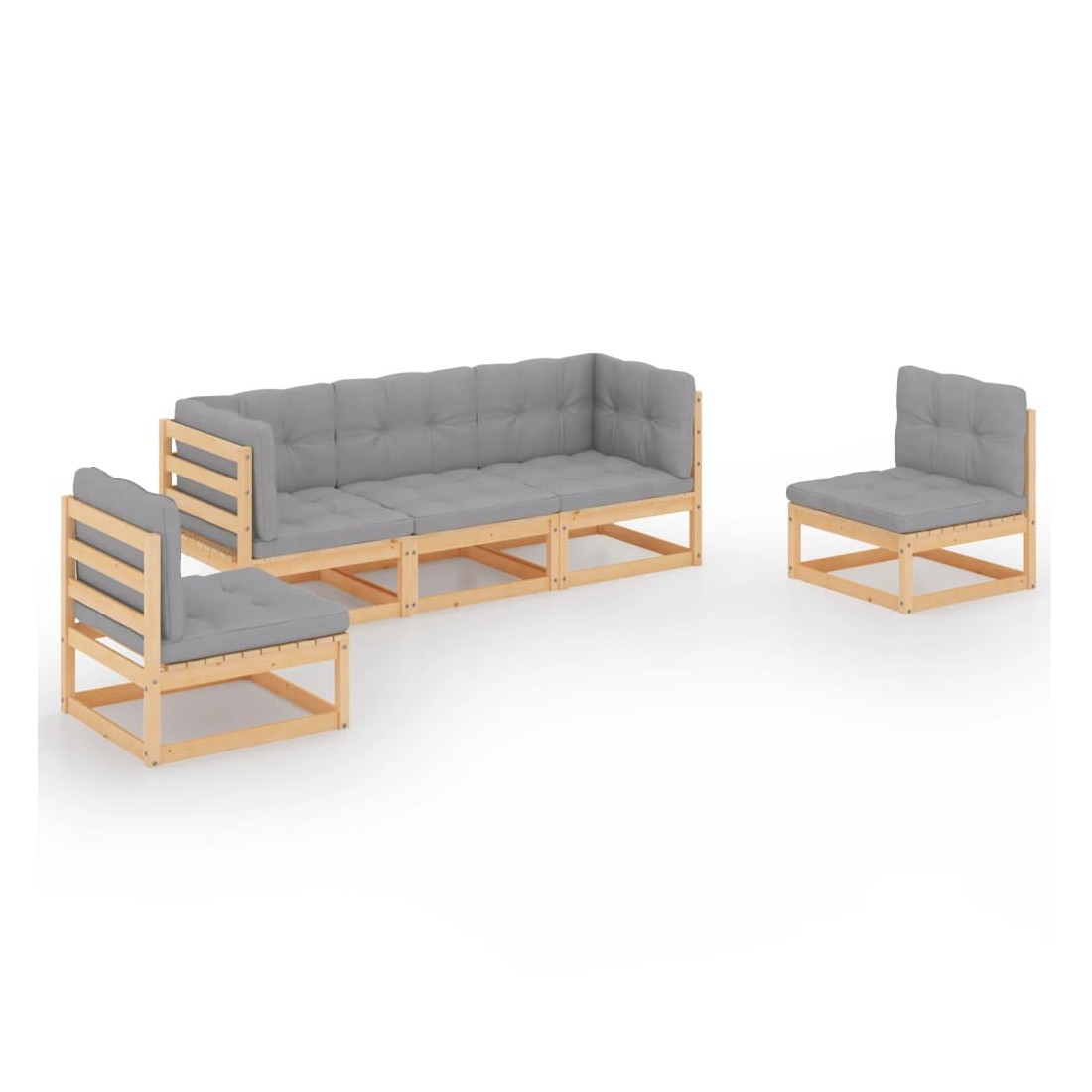 Salon de jardin 5 pcs avec coussins Bois de pin massif