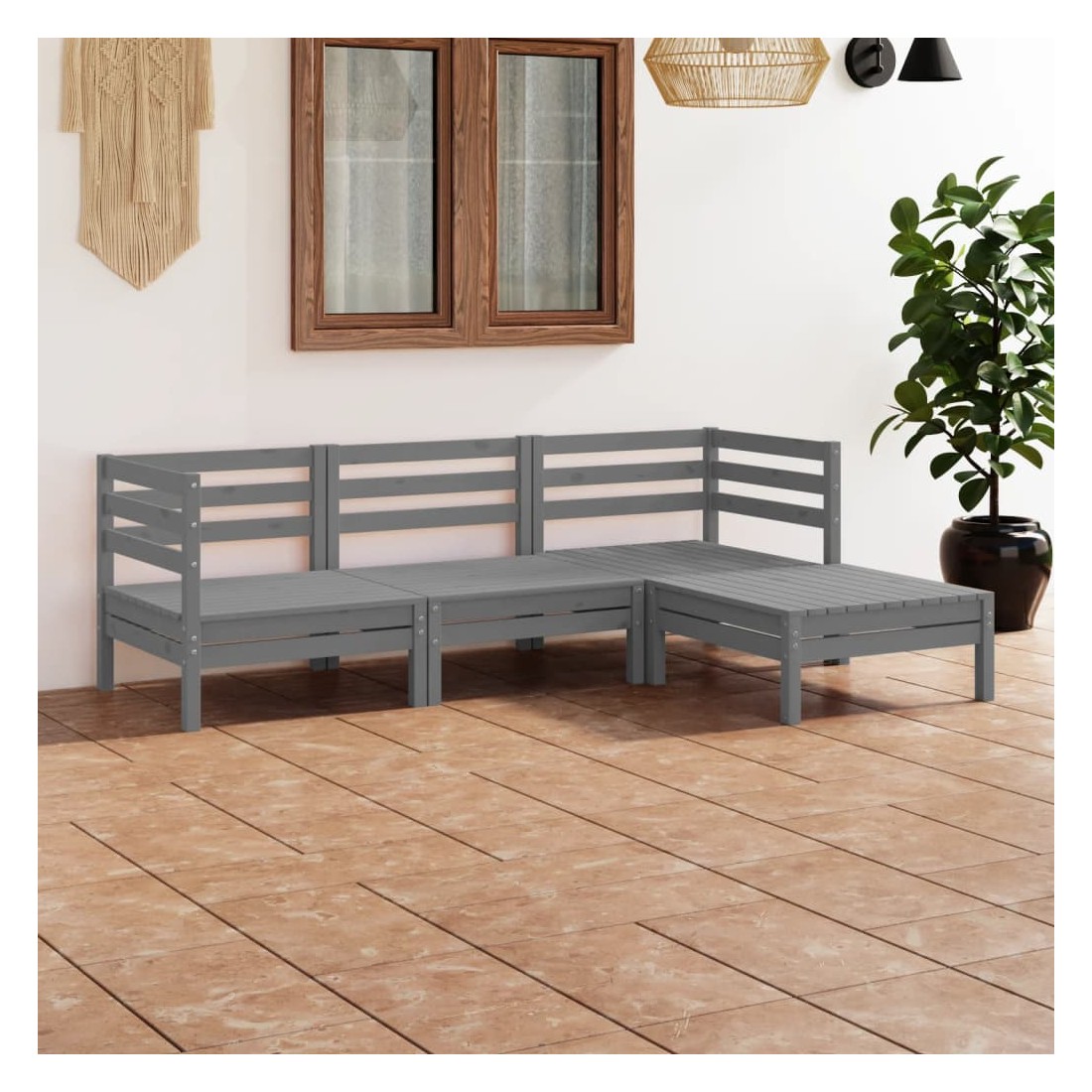 Salon de jardin 4 pcs Bois de pin massif Gris