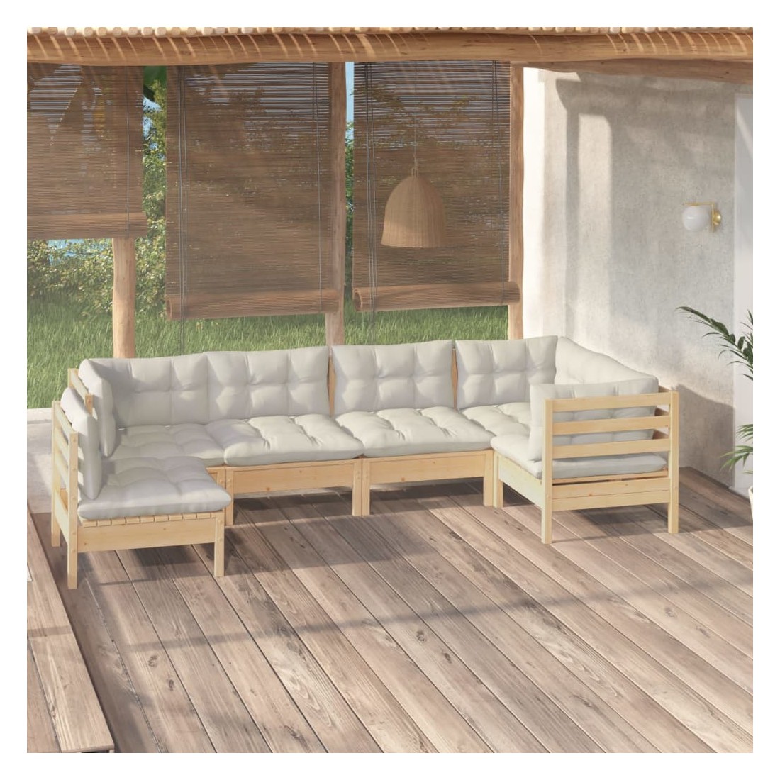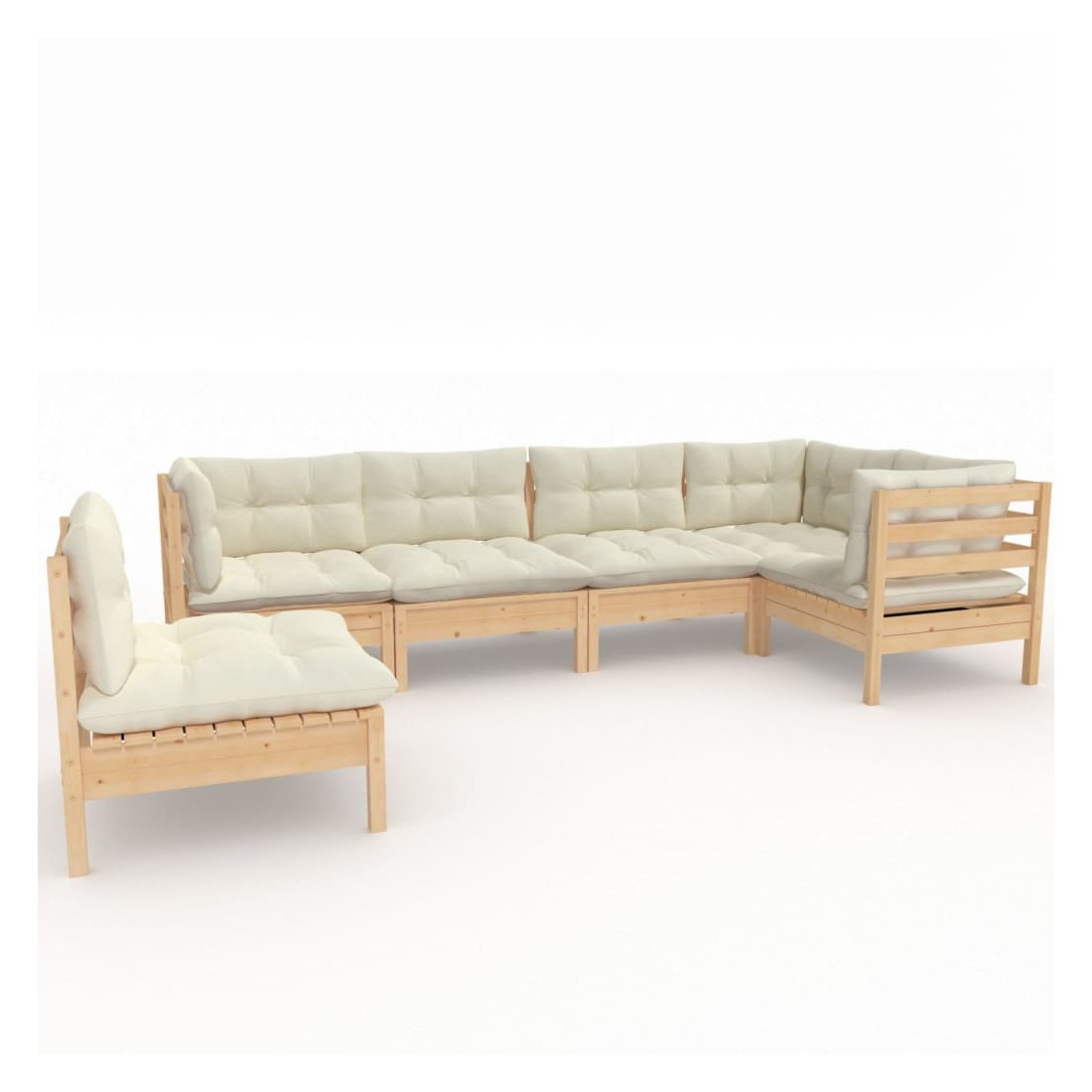 Salon de jardin 6 pcs avec coussins crème bois de pin