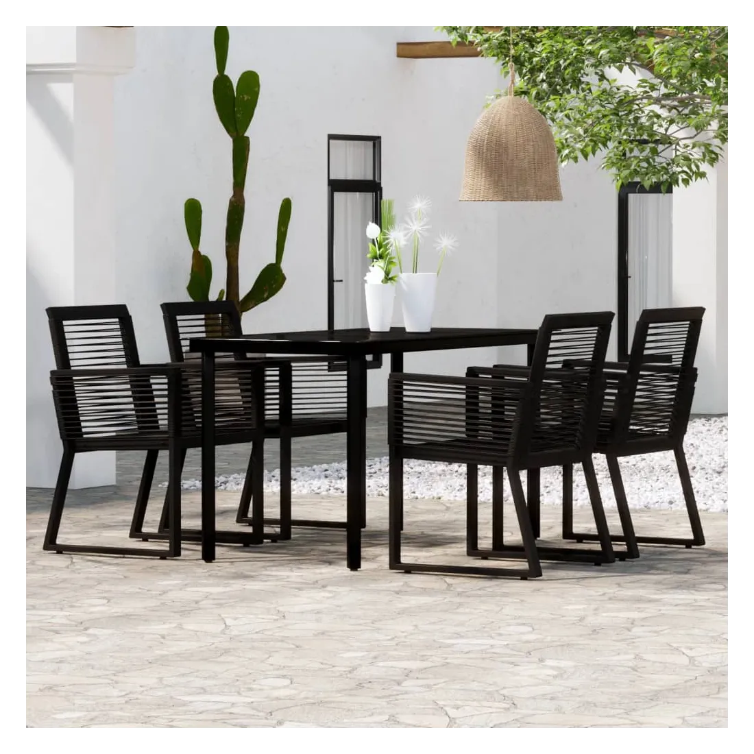Créez une esthétique convaincante et uniforme dans votre espace extérieur avec cet ensemble de salle à manger de jardin ! Cadre stable : cette table de salle à manger est fabriquée avec un cadre en acier enduit de poudre, robuste et stable pour une utilisation quotidienne à l'extérieur.Dessus de table en verre : le dessus de table en verre lisse est facile à nettoyer avec un chiffon humide et est parfait pour placer des repas, des boissons et d'autres objets décoratifs. Matériau durable : les chaises de jardin sont fabriquées en rotin PVC, tissé sur un cadre en acier laqué fin, ce qui les rend stables et résistantes aux intempéries et aux rayons UV. Bon à savoir :Afin de prolonger la durée de vie de votre mobilier d'extérieur, nous vous recommandons de le protéger avec une housse imperméable.