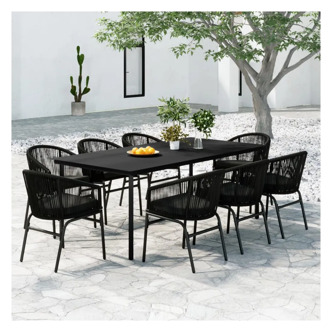Créez une esthétique convaincante et uniforme dans votre espace extérieur avec cet ensemble de salle à manger de jardin ! Cet ensemble de repas de jardin est fait de cadre en acier enduit de poudre, ce qui le rend robuste et stable pour une utilisation quotidienne à l’extérieur. Le dessus de table en verre lisse est facile à nettoyer avec un chiffon humide et est parfait pour placer des repas, des boissons et d'autres objets décoratifs. Les chaises de patio sont en rotin PVC, ce qui les rend durables et résistantes aux intempéries et aux rayons UV. De plus, chaque siège est livré avec un coussin bien rembourré amovible pour plus de confort pendant votre temps de détente. Remarque : afin de prolonger la durée de vie des meubles d'extérieur, nous vous recommandons de les protéger avec un