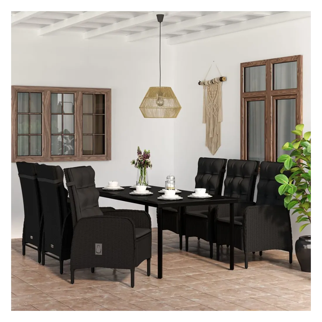 Ensemble à manger de jardin avec coussins 7 pcs Noir