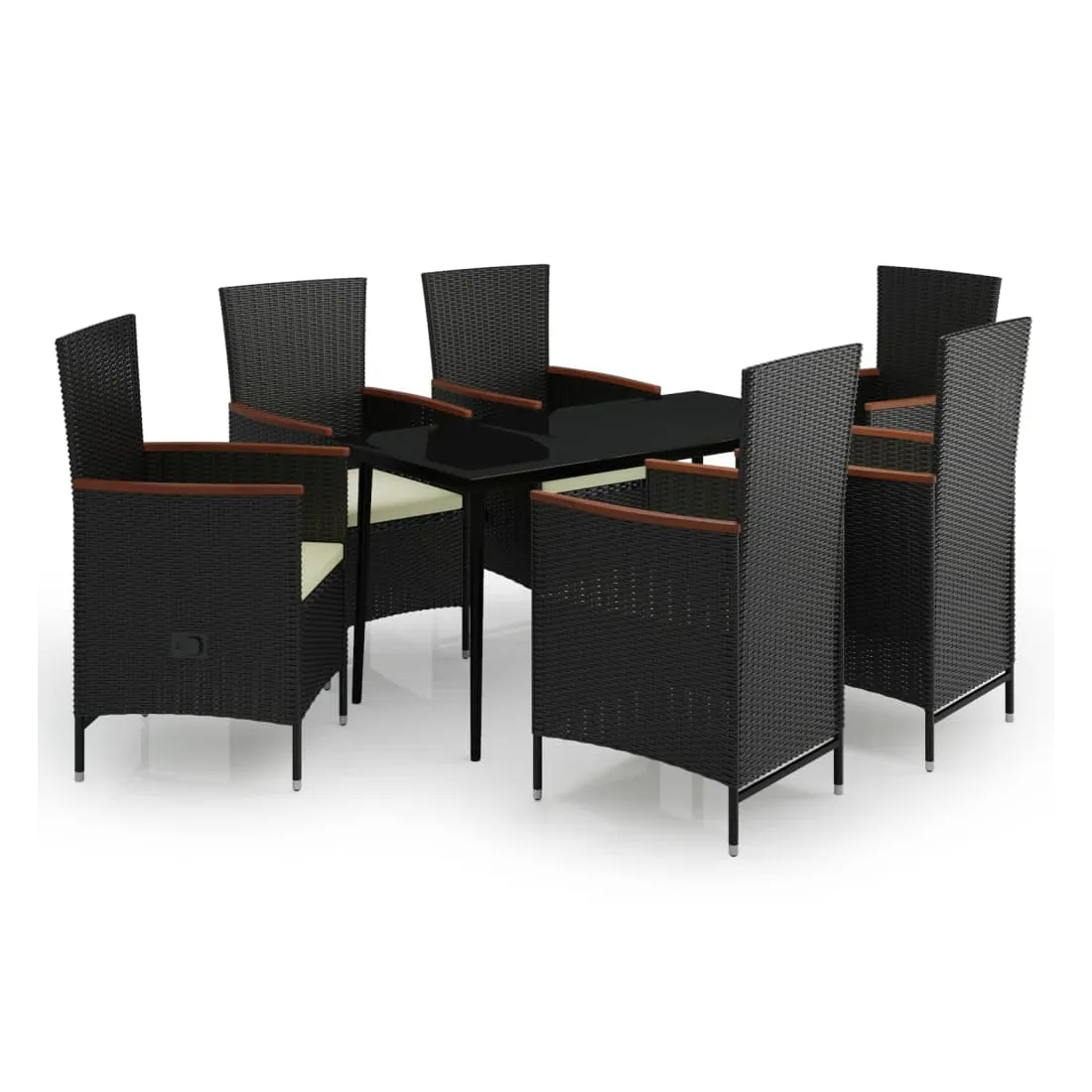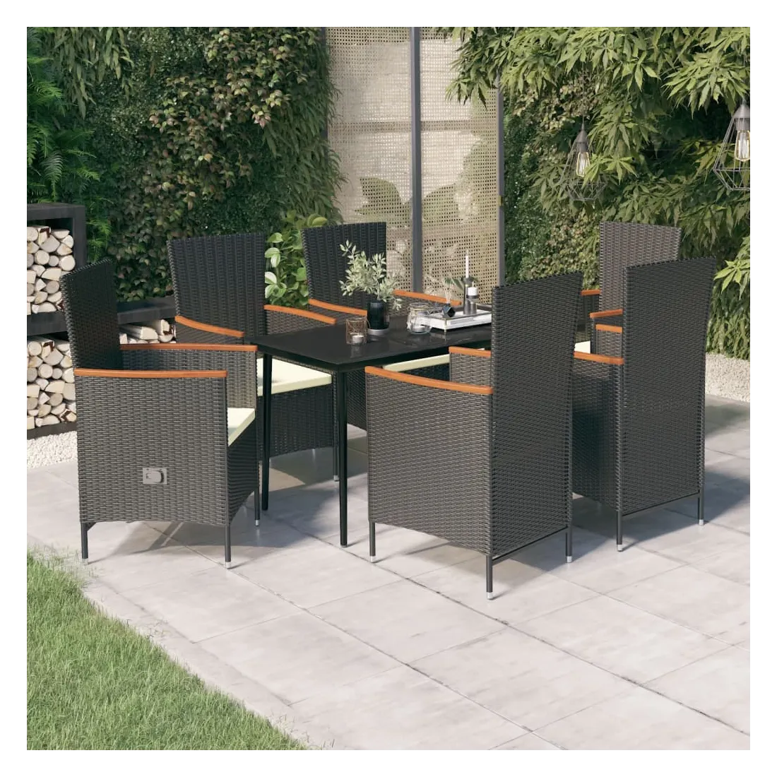 Ensemble à manger de jardin avec coussins 7 pcs Noir