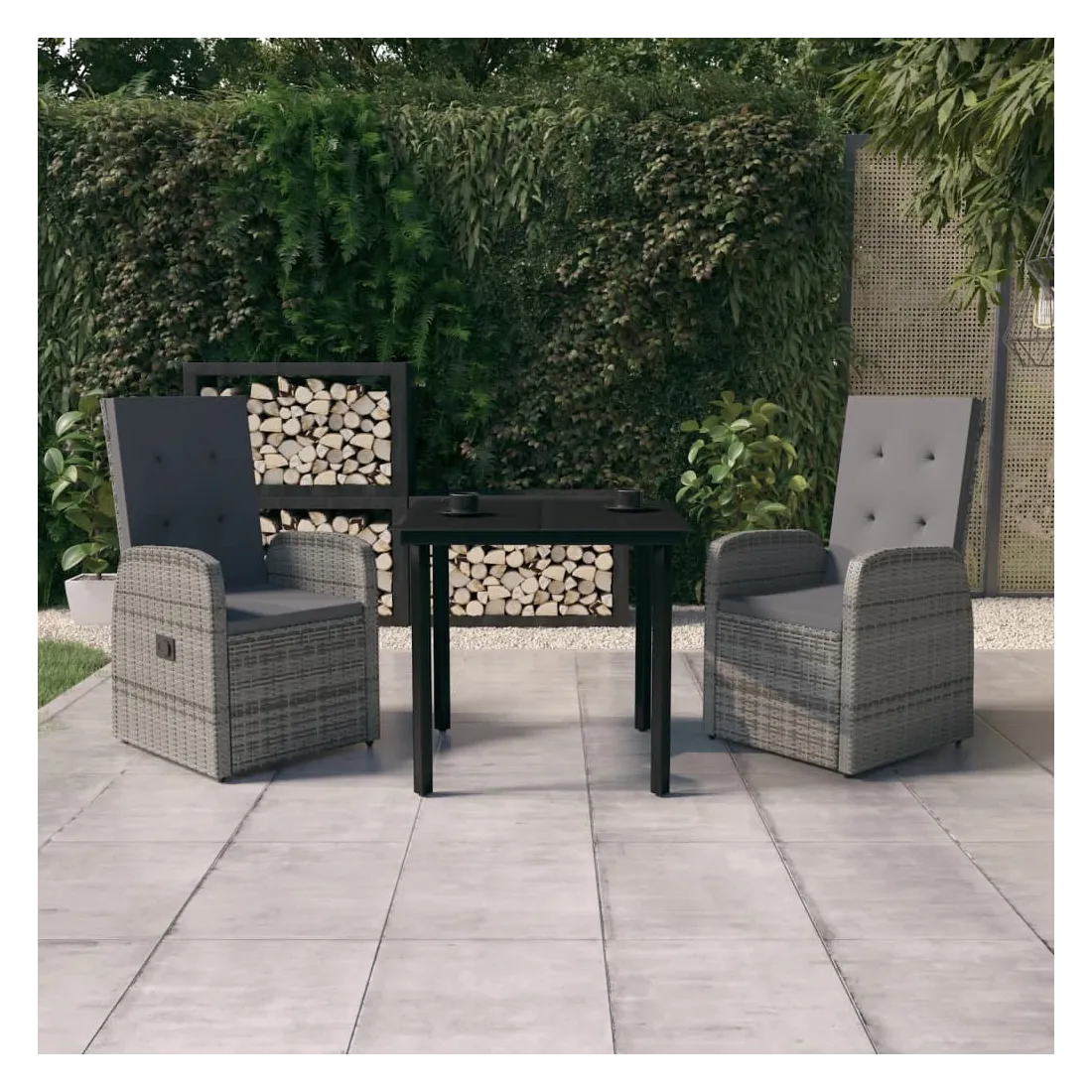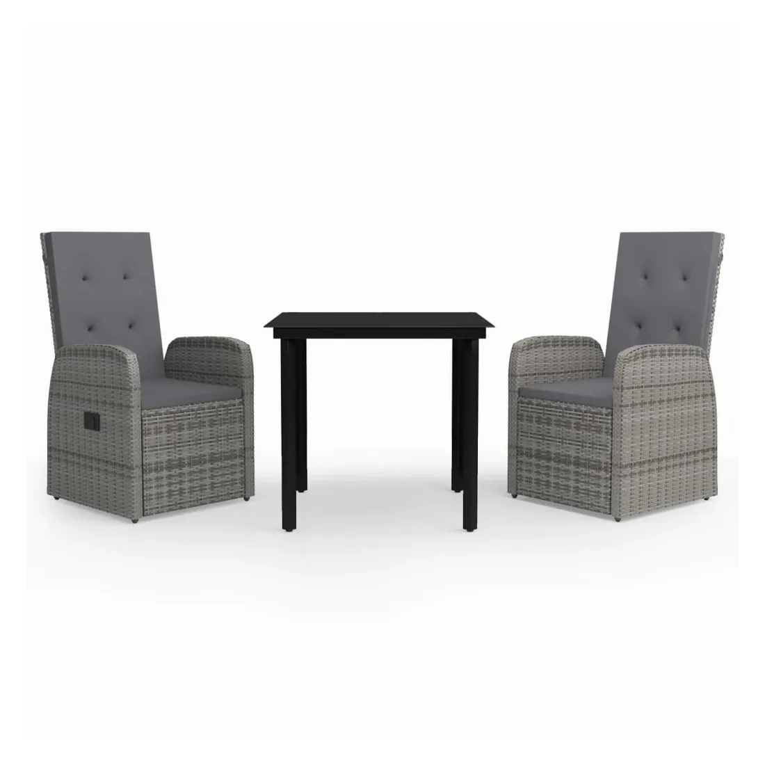 Ensemble à manger de jardin avec coussins 3 pcs Gris