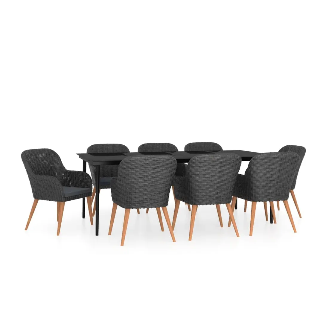Ensemble à manger de jardin avec coussins 9 pcs noir