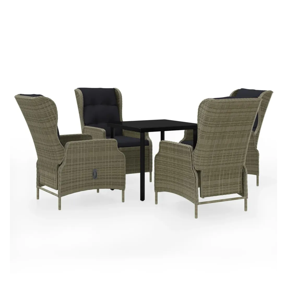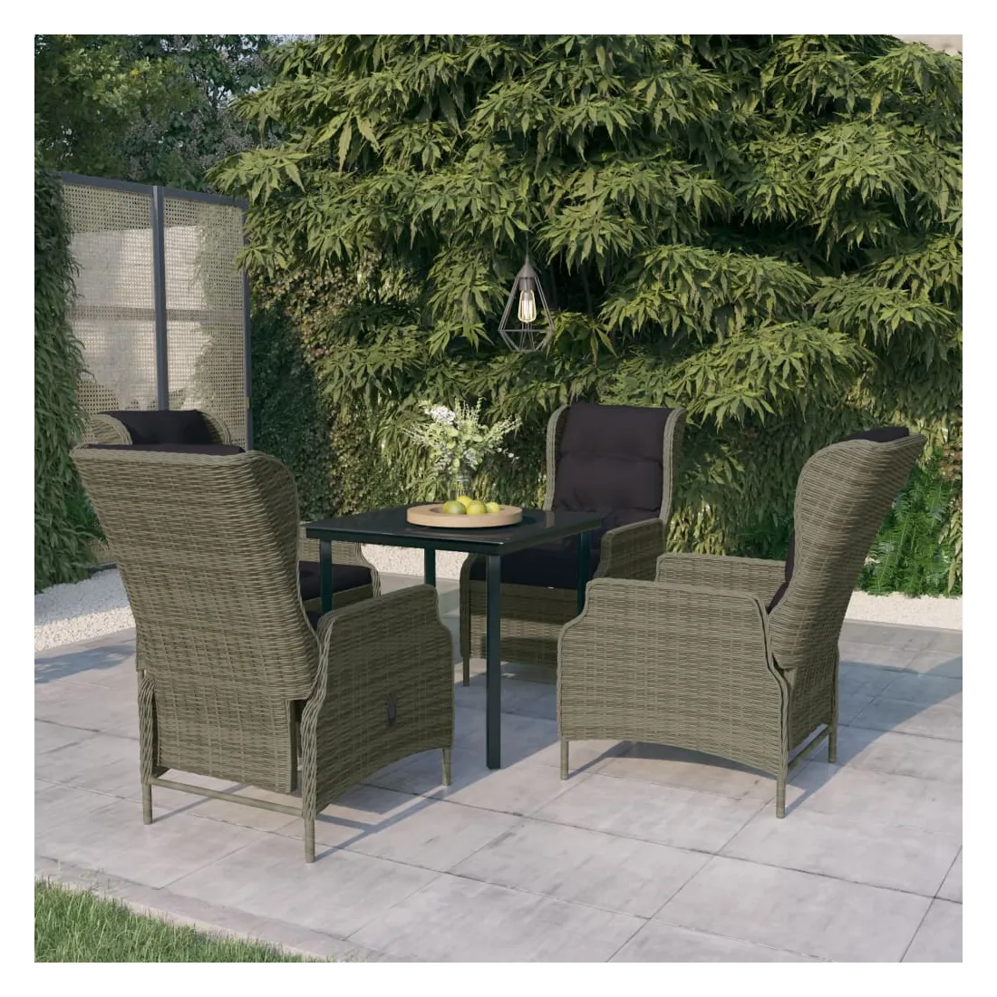 Profitez d'un bon repas ou d'un thé l'après-midi dans votre espace extérieur avec cet ensemble de salle à manger de jardin ! Ayant un design élégant, il deviendra le point central de votre jardin et de votre terrasse ! Cet ensemble de salle à manger d'extérieur pratique est doté d'un cadre en acier, ce qui le rend solide et robuste. Les chaises inclinables de jardin sont fabriquées en résine tressée résistante à l'eau et sans entretien, ce qui les rend parfaites pour une utilisation en extérieur. Les coussins bien rembourrés ajoutent un confort supplémentaire à vos repas. Les housses des coussins sont équipées d'une fermeture éclair et sont amovibles et lavables. Grâce au mécanisme de levage à gaz, le dossier est également réglable pour s'adapter à vos positions. En touchant le bouton