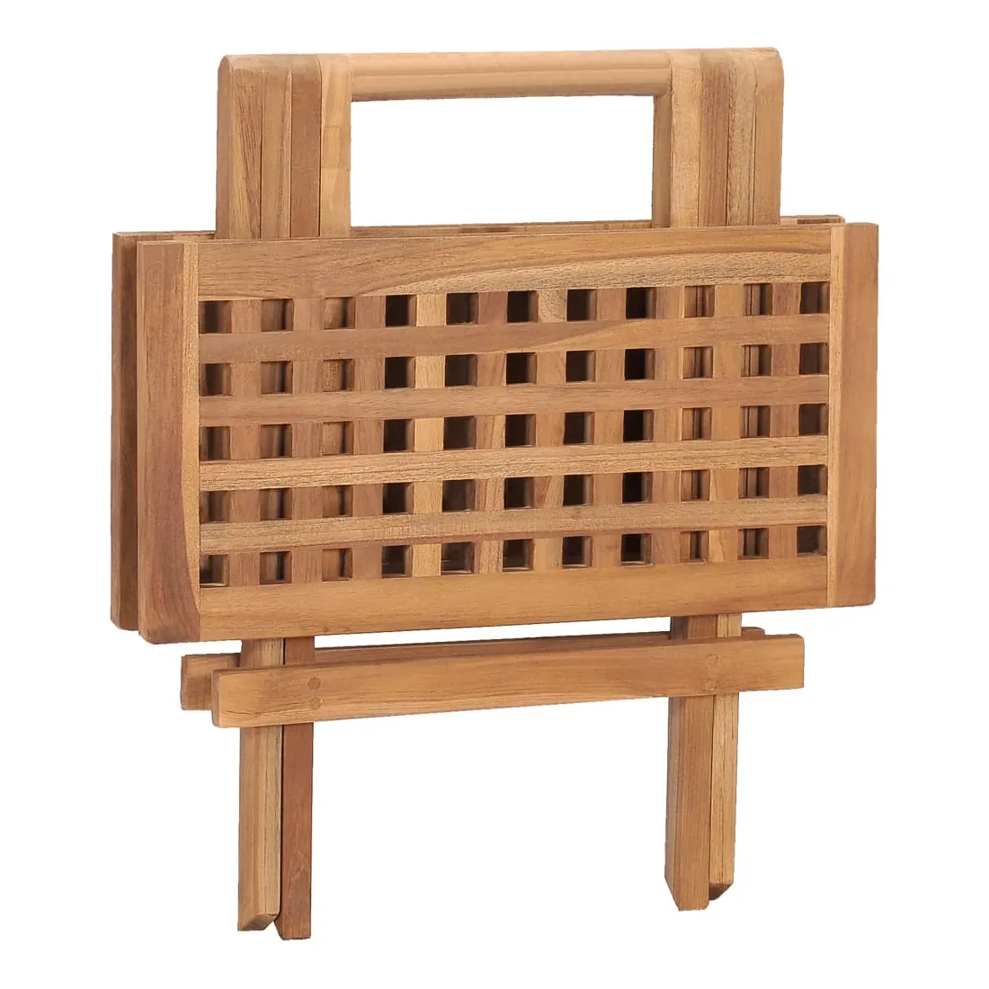 Cet élégant ensemble à manger en bois à la mode est spécialement conçu pour être le point de mire de votre jardin, terrasse ou patio. Cet ensemble de pique-nique est construit en bois dur de teck extrêmement durable, chevronné, séché au four et poncé finement pour lui donner un aspect très lisse. Le bois de teck est connu pour sa résistance exceptionnelle aux intempéries, ce qui le rend beaucoup plus adapté aux meubles de jardin que tout autre type de bois. Le bois de teck est le choix parfait si vous souhaitez acheter un meuble de jardin durable. De plus, la table et les chaises peuvent être pliées pour économiser de l’espace lorsqu'elles ne sont pas utilisées.