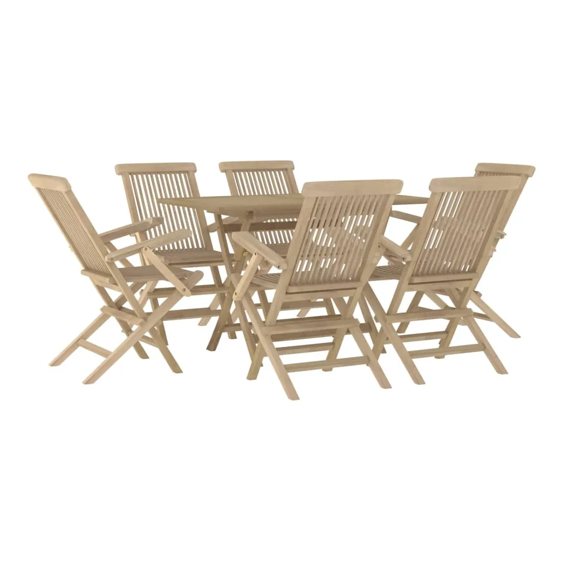 Détendez-vous et profitez d'un thé et de repas agréables avec votre famille et vos amis grâce à cet ensemble de salle à manger de jardin en bois classique ! Bois de teck massif : l'ensemble de salle à manger est fabriqué en bois de teck massif. Le bois de teck massif est un matériau naturel magnifique. Il a été chevronné, séché au four, puis sablé finement pour lui donner une apparence très lisse. Le bois de teck est connu pour sa résistance exceptionnelle et sa résistance aux intempéries.Fonction pliable : l'ensemble de salle à manger d'extérieur peut être plié pour économiser de l'espace lorsqu'il n'est pas utilisé.Expérience confortable : le dossier de la chaise de jardin vous offre un excellent soutien, offrant une expérience confortable optimale.Dessus de table robuste : le dessus de table robuste de la table à manger est parfait pour placer des repas, des boissons, des vases, des bols de fruits ou d'autres objets décoratifs.Trou pour parasol : le dessus de table est doté d'un trou pour parasol, ce qui vous permet de fixer facilement un parasol pour créer un coin ombragé.Design à lattes : la chaise à manger d'extérieur conçue avec un design à lattes est simple et intemporelle. Remarque :Pour que vos meubles d'extérieur restent beaux, nous vous recommandons de les protéger avec une housse imperméable.