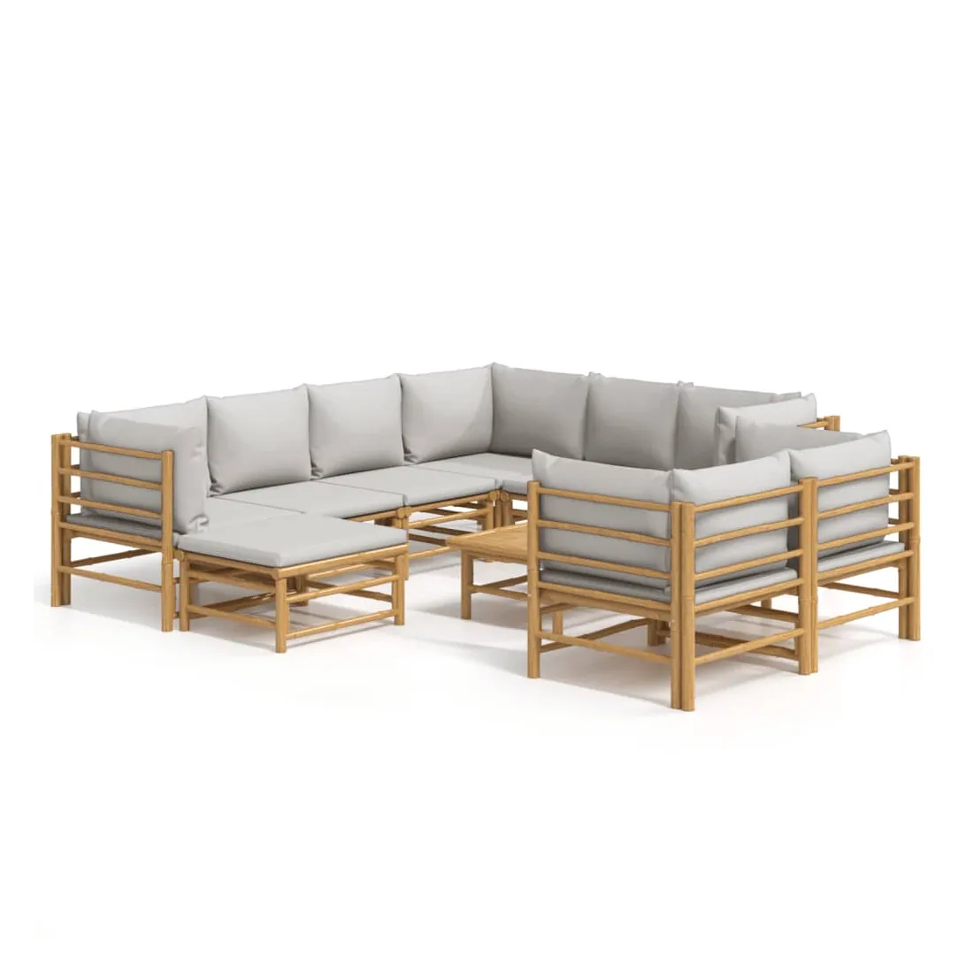 Savourez une tasse de café ou de thé par beau temps dans votre espace extérieur avec cet élégant ensemble de salon de jardin en bambou ! Matériau durable : le bambou est connu pour sa flexibilité et sa dureté. Les meubles en bambou sont une bonne option lorsque vous voulez des meubles d'extérieur solides fabriqués à partir de matériaux naturels.Expérience d'assise confortable : le dossier et l'accoudoir ajoutent un confort d'assise supplémentaire pour l'ensemble de canapé de jardin. De plus, les coussins d'assise et de dossier moelleux offrent un confort pendant votre temps d'assise.Table pratique : la table robuste est parfaite pour placer des repas, des boissons et d'autres objets décoratifs.Conception modulaire : l'ensemble de salon est flexible et facile à déplacer, vous pouvez donc le combiner avec d'autres segments modulaires dans la boutique en ligne pour créer vos propres configurations d'ensemble de salon d'extérieur ! Remarque :Pour que vos meubles d'extérieur restent beaux, nous vous recommandons de les protéger avec une housse imperméable.Bon à savoir :Pour faciliter au maximum le montage, chaque produit est livré avec des instructions.