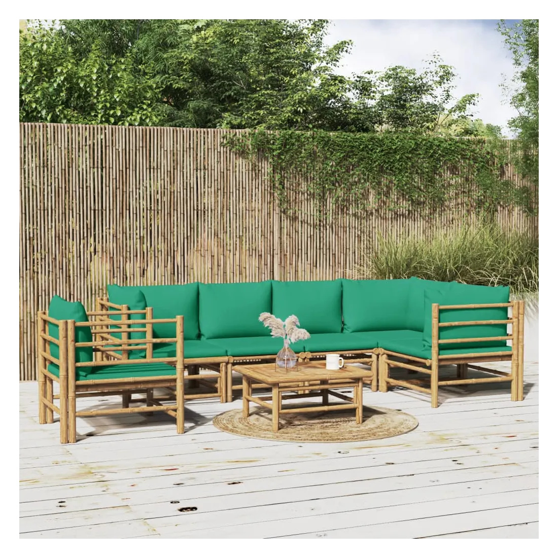 Salon de jardin 7 pcs avec coussins vert bambou