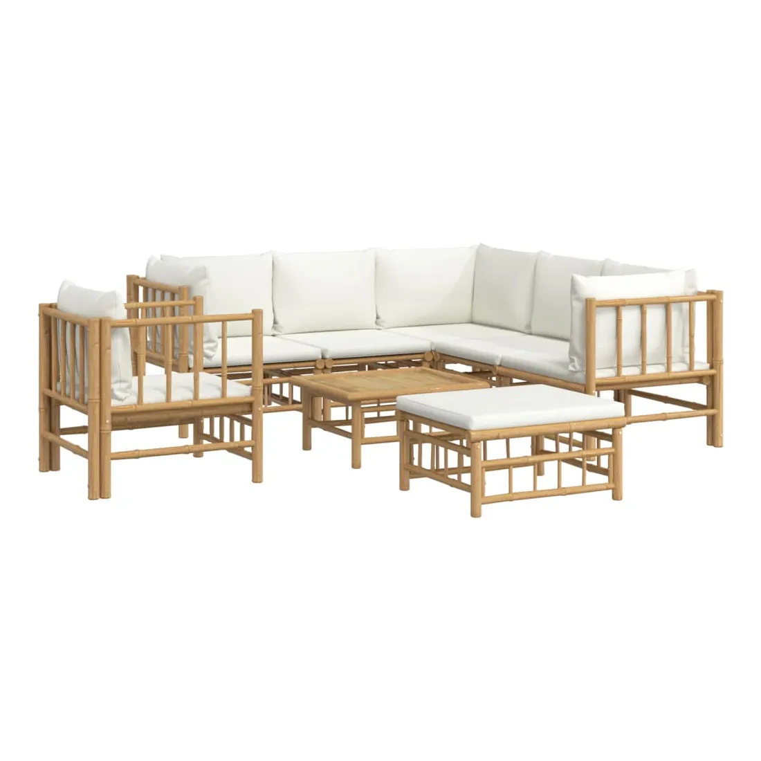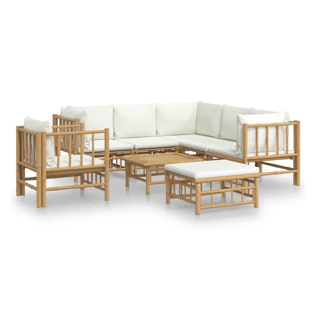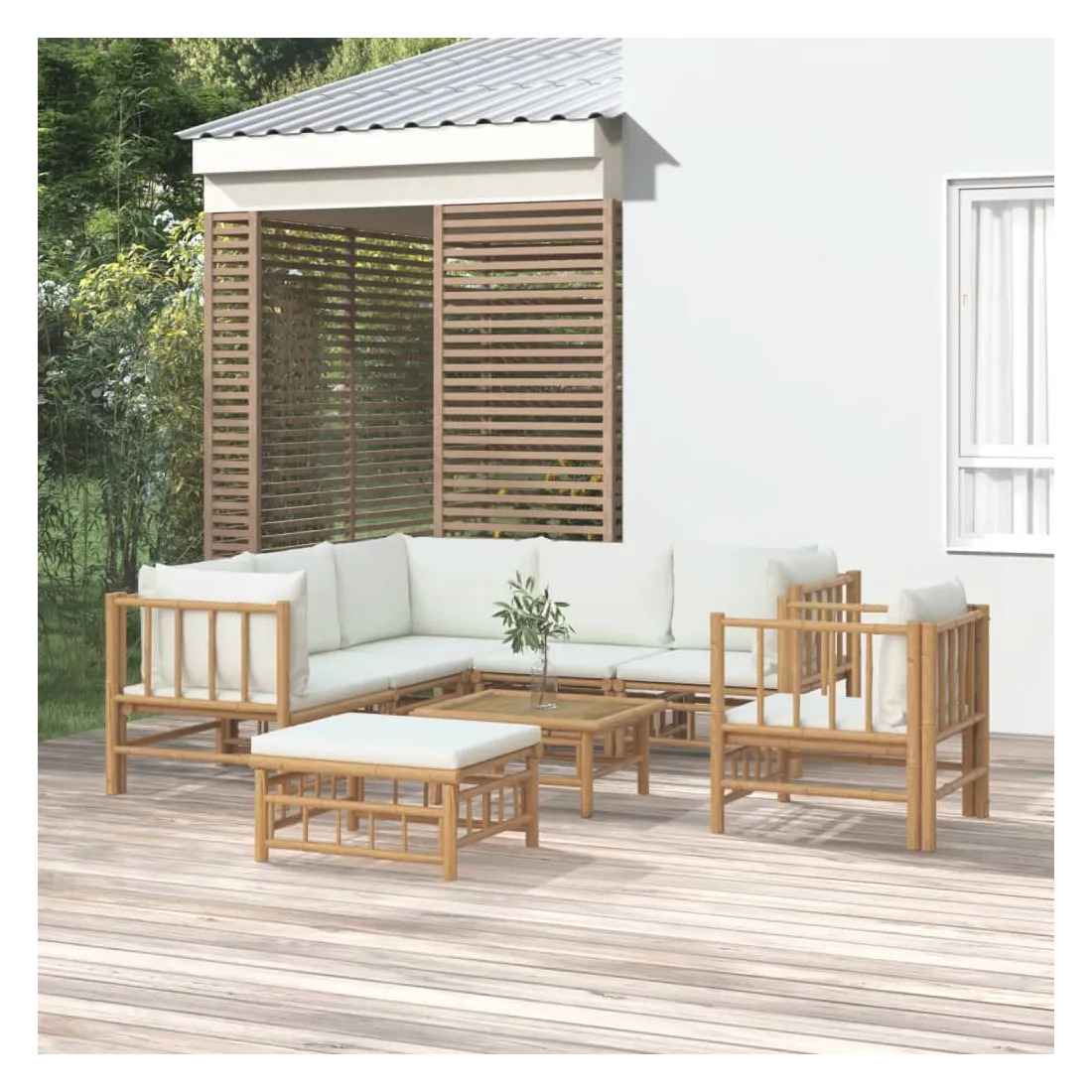 Savourez une tasse de café ou de thé par beau temps dans votre espace extérieur avec cet élégant ensemble de salon de jardin en bambou ! Matériau durable : le bambou est connu pour sa flexibilité et sa dureté. Les meubles en bambou sont une bonne option lorsque vous voulez des meubles d'extérieur solides fabriqués à partir de matériaux naturels.Expérience d'assise confortable : le dossier et l'accoudoir ajoutent un confort d'assise supplémentaire pour l'ensemble de canapé de jardin. De plus, les coussins d'assise et de dossier moelleux offrent un confort pendant votre temps d'assise.Table pratique : la table robuste est parfaite pour placer des repas, des boissons et d'autres objets décoratifs.Conception modulaire : l'ensemble de salon est flexible et facile à déplacer, vous pouvez donc le combiner avec d'autres segments modulaires dans la boutique en ligne pour créer vos propres configurations d'ensemble de salon d'extérieur ! Remarque :Pour que vos meubles d'extérieur restent beaux, nous vous recommandons de les protéger avec une housse imperméable.Bon à savoir :Pour faciliter au maximum le montage, chaque produit est livré avec des instructions.