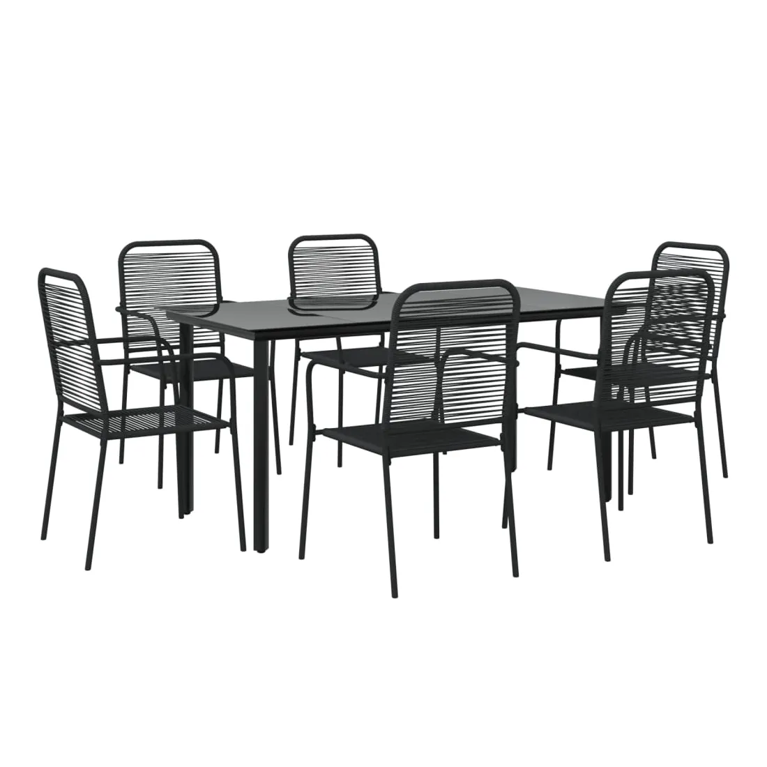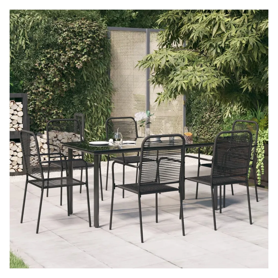Cet ensemble de salle à manger de jardin tendance au design élégant et aux lignes épurées est un excellent choix pour votre jardin, patio, terrasse, cuisine et même salles à manger. Matériau durable : le dossier et le siège sont fabriqués en corde de coton double, doux au toucher et robuste pour une utilisation à long terme.Cadre robuste : les cadres en acier enduit de poudre rendent l'ensemble de salle à manger d'extérieur robuste et stable pour une utilisation quotidienne à l'extérieur.Dessus de table pratique : le dessus lisse de la table de salle à manger est en verre trempé, facile à nettoyer avec un chiffon humide. De plus, le dessus robuste est parfait pour placer des repas, des boissons et d'autres objets décoratifs.Design flexible : grâce à leur construction légère, ces chaises de jardin sont faciles à déplacer et peuvent être empilées pour économiser de l'espace lorsqu'elles ne sont pas utilisées. Remarque :Afin de prolonger la durée de vie de votre mobilier d'extérieur, nous vous recommandons de le protéger avec une housse imperméable.Chaque produit est livré avec un manuel de montage dans la boîte pour un montage facile.