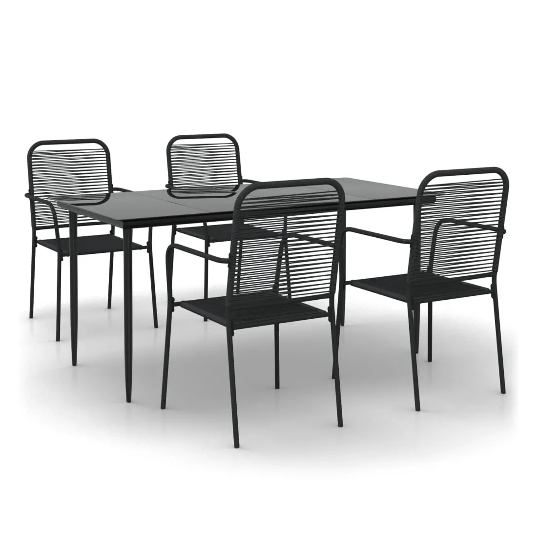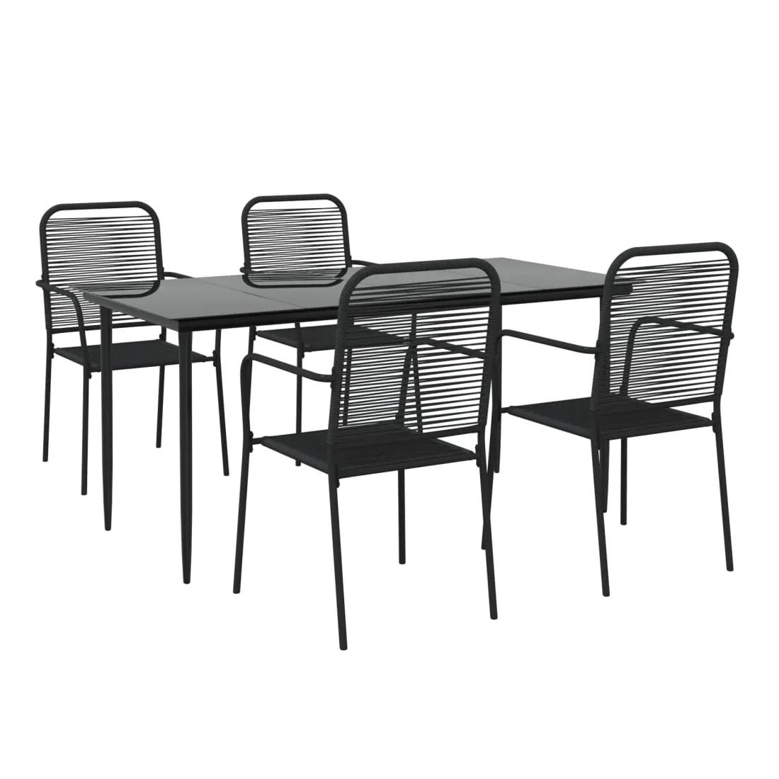 Cet ensemble de salle à manger de jardin tendance au design élégant et aux lignes épurées est un excellent choix pour votre jardin, patio, terrasse, cuisine et même salles à manger. Matériau durable : le dossier et le siège sont fabriqués en corde de coton double, doux au toucher et robuste pour une utilisation à long terme.Cadre robuste : les cadres en acier enduit de poudre rendent l'ensemble de salle à manger d'extérieur robuste et stable pour une utilisation quotidienne à l'extérieur.Dessus de table pratique : le dessus lisse de la table de salle à manger est en verre trempé, facile à nettoyer avec un chiffon humide. De plus, le dessus robuste est parfait pour placer des repas, des boissons et d'autres objets décoratifs.Design flexible : grâce à leur construction légère, ces chaises de jardin sont faciles à déplacer et peuvent être empilées pour économiser de l'espace lorsqu'elles ne sont pas utilisées. Remarque :Afin de prolonger la durée de vie de votre mobilier d'extérieur, nous vous recommandons de le protéger avec une housse imperméable.Chaque produit est livré avec un manuel de montage dans la boîte pour un montage facile.