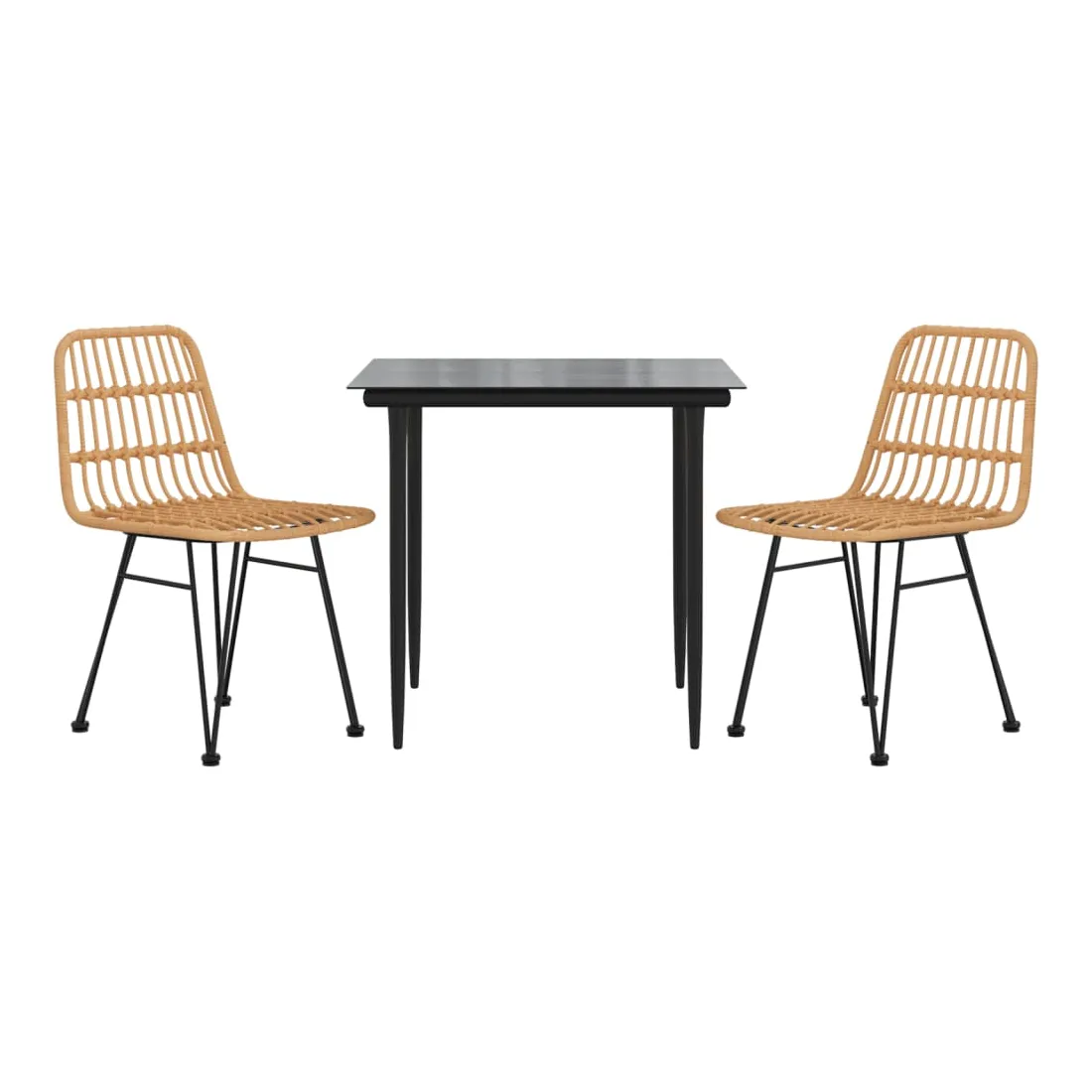 Créez une esthétique convaincante et uniforme dans votre espace extérieur avec cet ensemble de salle à manger de jardin ! Matériau durable : la résine tressée, également connue sous le nom de rotin poly, résiste aux intempéries et est facile à nettoyer. Elle reste belle à l'extérieur pendant une longue période. Elle offre une excellente qualité, commodité et un aspect esthétique.Cadre robuste et stable : les cadres en acier rendent l'ensemble de terrasse robuste et stable pour une utilisation quotidienne à l'extérieur.Dessus de table pratique : le dessus lisse de la table de salle à manger est en verre trempé, facile à nettoyer avec un chiffon humide. De plus, le dessus robuste est parfait pour placer des repas, des boissons et d'autres objets décoratifs.Assise confortable : la chaise de salle à manger est conçue avec un dossier pour vous offrir une expérience d'assise confortable.Bouchons de pieds pratiques : l'ensemble de bistro est livré avec des bouchons de pieds qui l'aident à se tenir plus fermement au sol. Remarque :Afin de prolonger la durée de vie de votre mobilier d'extérieur, nous vous recommandons de le protéger avec une housse imperméable.Chaque produit est livré avec un manuel de montage dans la boîte pour un montage facile.
