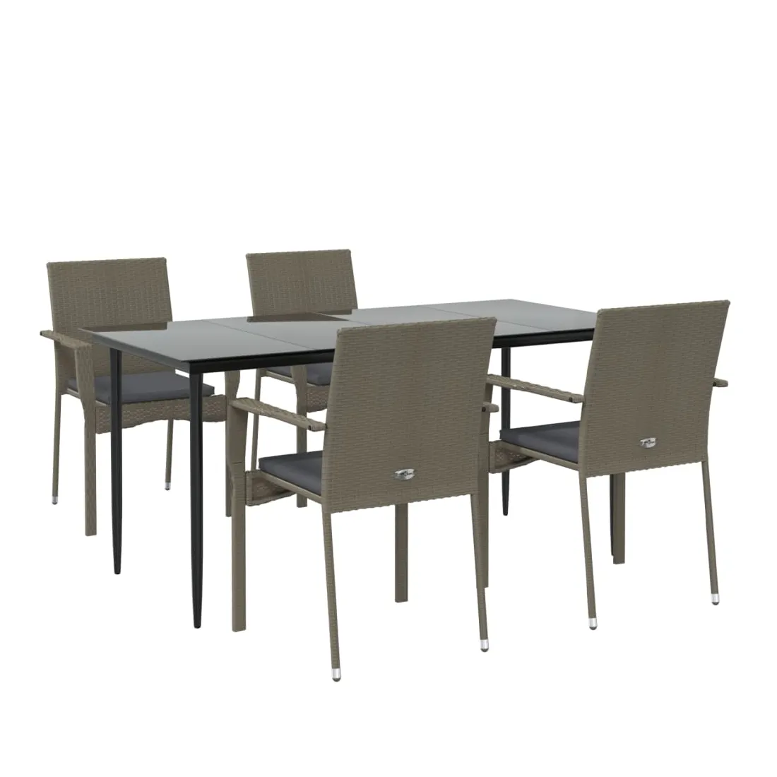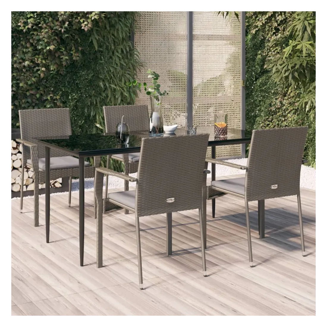 Cet ensemble de salle à manger de jardin tendance, au design élégant et contemporain, est un excellent choix pour manger ou vous détendre dans votre jardin. Matériau résistant aux intempéries : la résine tressée, également connue sous le nom de rotin poly, résiste aux intempéries et est facile à nettoyer. Elle reste belle à l'extérieur pendant une longue période. Elle offre une excellente qualité, commodité et un aspect esthétique.Cadre robuste : les cadres en acier enduit de poudre rendent l'ensemble de salle à manger d'extérieur robuste et stable pour une utilisation quotidienne à l'extérieur.Dessus de table pratique : le dessus lisse de la table de jardin est en verre trempé, facile à nettoyer avec un chiffon humide. De plus, le dessus robuste est parfait pour placer des repas, des boissons et d'autres objets décoratifs.Conception modulaire : l'ensemble de salle à manger de jardin est flexible et facile à déplacer, vous pouvez donc le combiner avec d'autres segments modulaires dans la boutique en ligne pour créer vos propres configurations d'ensemble de salle à manger de jardin !Expérience d'assise confortable : le dossier ajoute un confort d'assise supplémentaire à la chaise de jardin. De plus, les coussins bien rembourrés vous permettent de vous asseoir confortablement. Bon à savoir :Pour faciliter au maximum le montage, chaque produit est livré avec des instructions. Remarque :Pour que vos meubles d'extérieur restent beaux, nous vous recommandons de les protéger avec une housse imperméable.