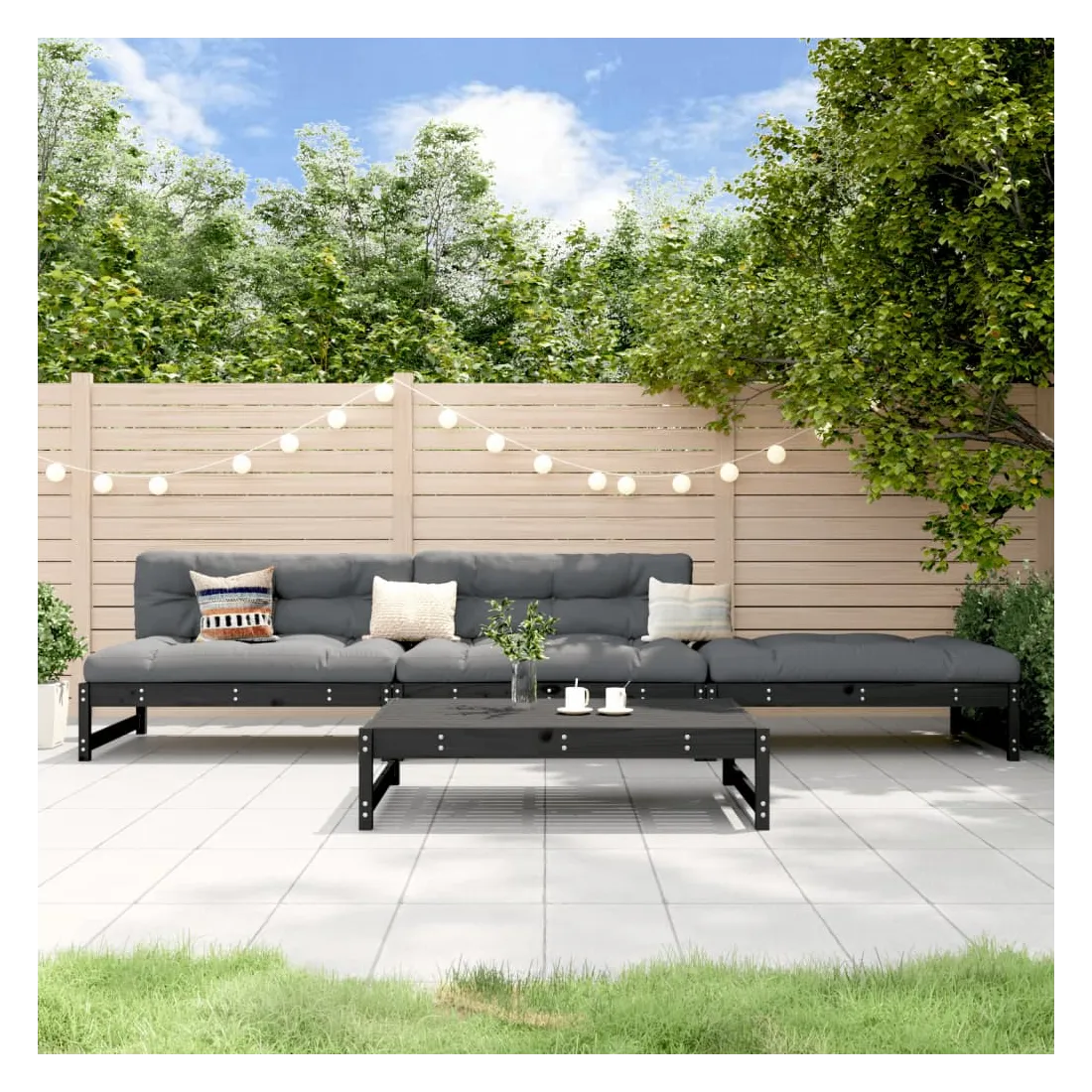 Ce salon de jardin en bois, qui se démarque par son design à lattes, sera un excellent supplément à votre jardin, patio ou terrasse pour profiter d'un moment agréable avec votre famille ou vos amis. Bois de pin massif : le bois de pin massif est un matériau naturel magnifique. Le bois de pin a un grain droit et les nœuds donnent au matériau son aspect caractéristique et rustique.Expérience d'assise confortable : le dossier ajoute un confort d'assise supplémentaire à l'ensemble de salon.Design modulaire : l’ensemble de salon palette est flexible et facile à déplacer. Vous pouvez le combiner avec d'autres segments modulaires de la boutique en ligne pour créer vos propres configurations de salon de jardin ! Bon à savoir :Les coussins ne sont pas inclus.Pour que vos meubles d'extérieur restent beaux, nous vous recommandons de les protéger avec une housse imperméable.