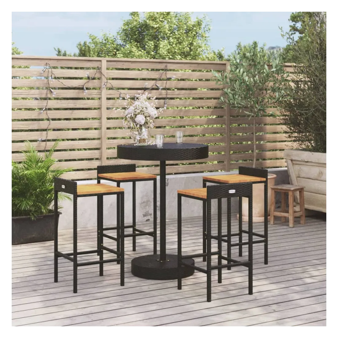Cet ensemble de bar de jardin tendance, combinant à la fois style et fonctionnalité, est sûrement destiné à être la pièce maîtresse de votre jardin, terrasse et de tout autre espace de vie. Matériau résistant aux intempéries : la résine tressée, également connue sous le nom de rotin poly, résiste aux intempéries et est facile à nettoyer. Elle reste belle à l'extérieur pendant une longue période. Elle offre une excellente qualité, commodité et un aspect esthétique.Assise confortable : le tabouret de bar est conçu avec un repose-pied intégré pour vous offrir une expérience d'assise confortable. L'assise en bois confère au tabouret un aspect naturel et agréable tout en assurant sa stabilité.Table pratique : la table de bar ronde est idéale pour accueillir vos boissons, vos snacks et vos décorations préférées.Cadre robuste et stable : les cadres en acier enduit de poudre rendent l'ensemble de pub robuste et stable pour une utilisation quotidienne à l'extérieur.Applications larges : la table et les tabourets de bar, avec leur design remarquable, créent un aspect général agréable qui s'intègre sans effort dans n'importe quel décor. Bon à savoir :Pour faciliter au maximum le montage, chaque produit est livré avec des instructions.Remarque :Pour que vos meubles d'extérieur restent beaux, nous vous recommandons de les protéger avec une housse imperméable.