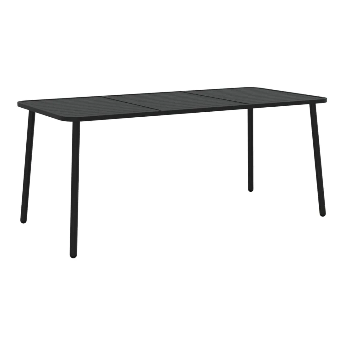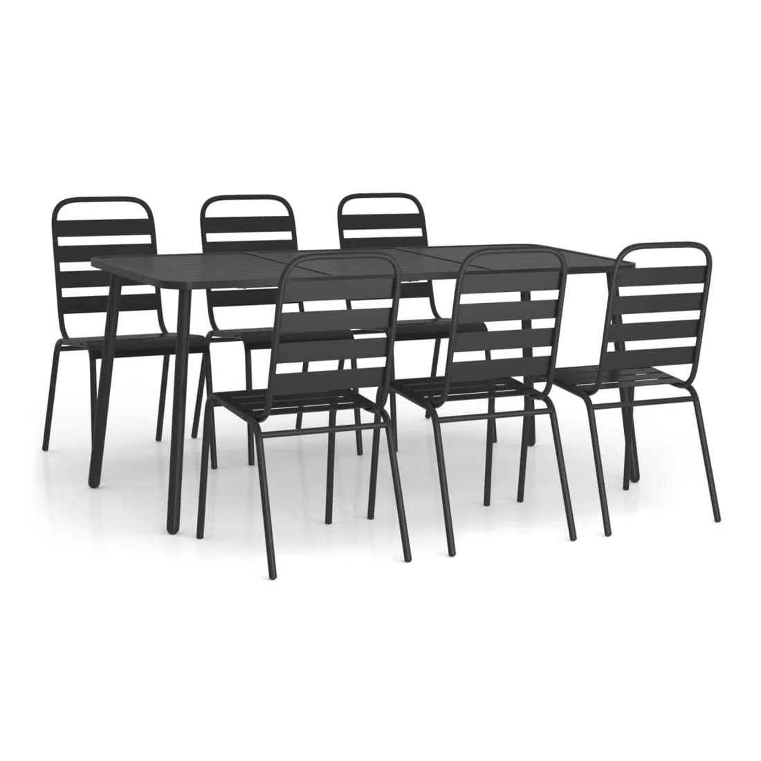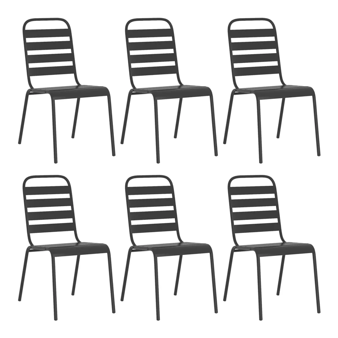Cet ensemble de salle à manger de jardin tendance, au design élégant et contemporain, est un choix parfait pour vous détendre dans votre jardin. Matériau robuste : l'acier est un matériau exceptionnellement dur et solide. Il offre robustesse et stabilité. Le revêtement par poudre et le revêtement électronique de l'acier créent une couche protectrice contre l'usure et la corrosion.Cadre stable : le cadre en acier enduit de poudre et e-coated assure la robustesse et la stabilité de l'ensemble de salle à manger.Fonction empilable : les chaises de salle à manger sont empilables pour économiser de l'espace lorsqu'elles ne sont pas utilisées.Table pratique : le dessus robuste de la table à manger est parfait pour placer des repas, des boissons et d'autres objets décoratifs.Design à lattes : la table à manger de jardin avec un design à lattes est simple et intemporelle et convient aux balcons, porches, jardins, terrasses, etc. Remarque :Pour que vos meubles d'extérieur restent beaux, nous vous recommandons de les protéger avec une housse imperméable.