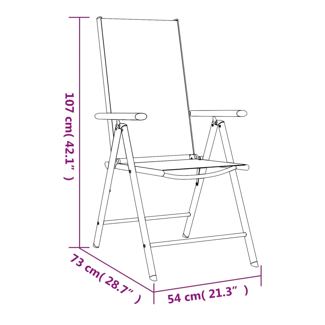 - Matériau : aluminium enduit de poudre, textilène