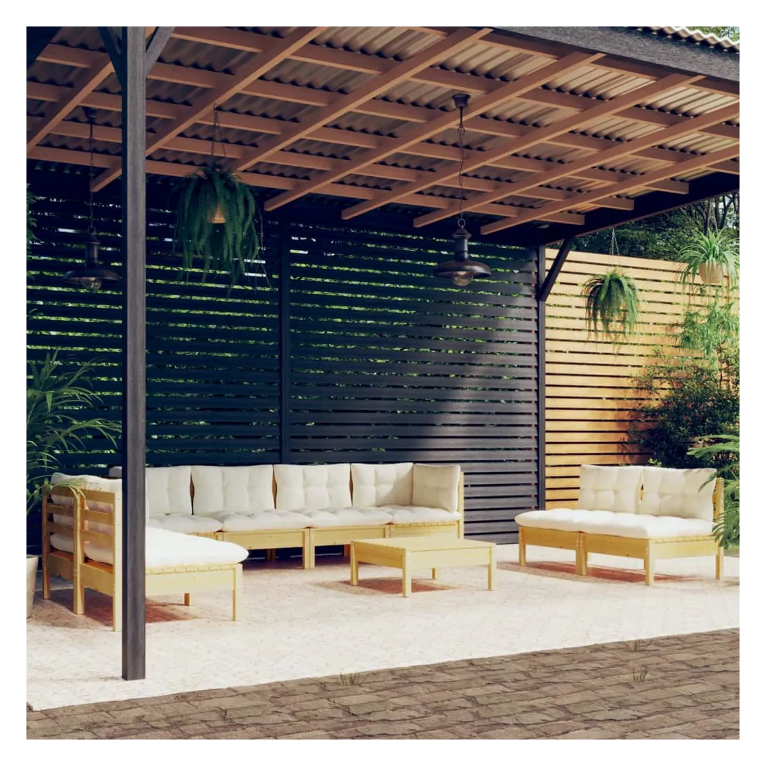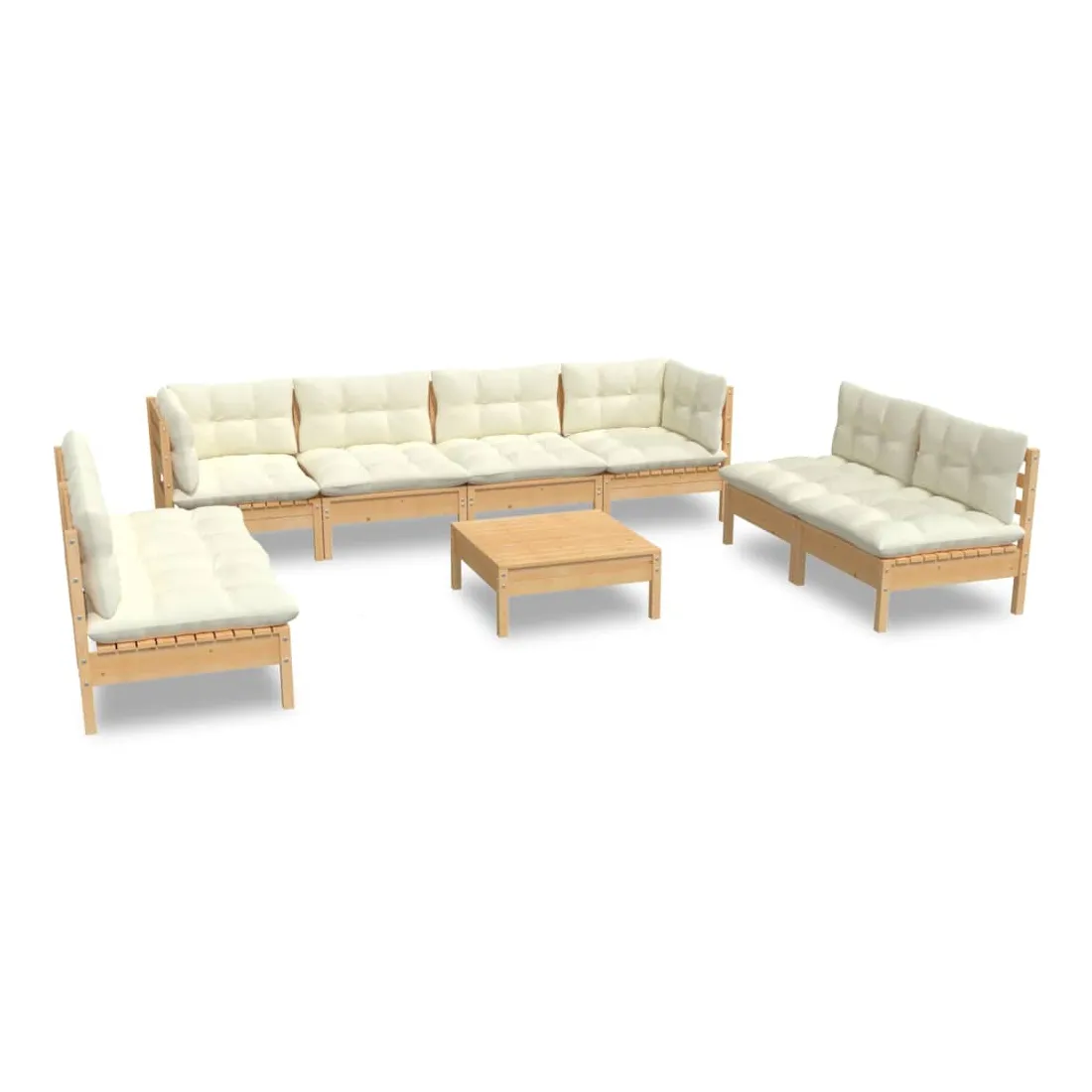 Ce salon de jardin est un excellent choix pour vous détendre et profiter du beau temps, faire une sieste ou discuter avec votre famille ou vos amis. Le salon de patio est fabriqué en bois de pin massif, ce qui le rend robuste et stable. Les coussins ajoutent un confort supplémentaire. Vous pouvez le combiner avec d’autres segments modulaires pour créer vos propres configurations de salon de jardin ! Remarque : afin de prolonger la durée de vie des meubles d'extérieur, nous vous recommandons de les protéger avec une housse imperméable.