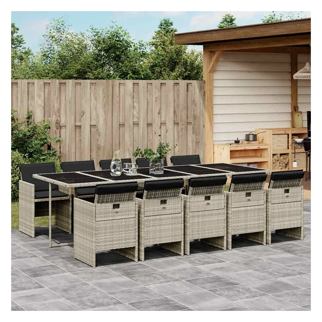 Cet ensemble de salle à manger de jardin est un excellent choix pour les repas en plein air ou pour vous détendre dans le jardin, dans l'arrière-cour ou sur la terrasse. Matériau durable : la résine tressée, également connue sous le nom de poly rotin, est un matériau synthétique solide et nécessitant peu d'entretien qui ressemble au rotin naturel. Il est léger, facile à nettoyer et couramment utilisé pour les meubles d'extérieur en raison de sa durabilité et de ses propriétés de résistance aux intempéries.Rangement compact : ces chaises sont dotées d'un dossier rabattable, ce qui permet de les ranger facilement sous la table. Une fois pliées, elles se rangent parfaitement sous la table, formant un cube peu encombrant. Expérience d'assise confortable : ce mobilier d'extérieur, doté de coussins épais, offre une expérience d'assise confortable.Housse amovible et lavable : ces coussins de siège sont dotés de housses amovibles pour un lavage et un entretien faciles.Dessus en verre : le dessus de la table d'extérieur est fabriqué en verre trempé solide et durable, ce qui le rend facile à nettoyer avec un chiffon humide et ajoute une touche d'élégance à votre espace extérieur. Bon à savoir : Pour que vos meubles d'extérieur restent beaux, nous vous recommandons de les protéger avec une housse imperméable.