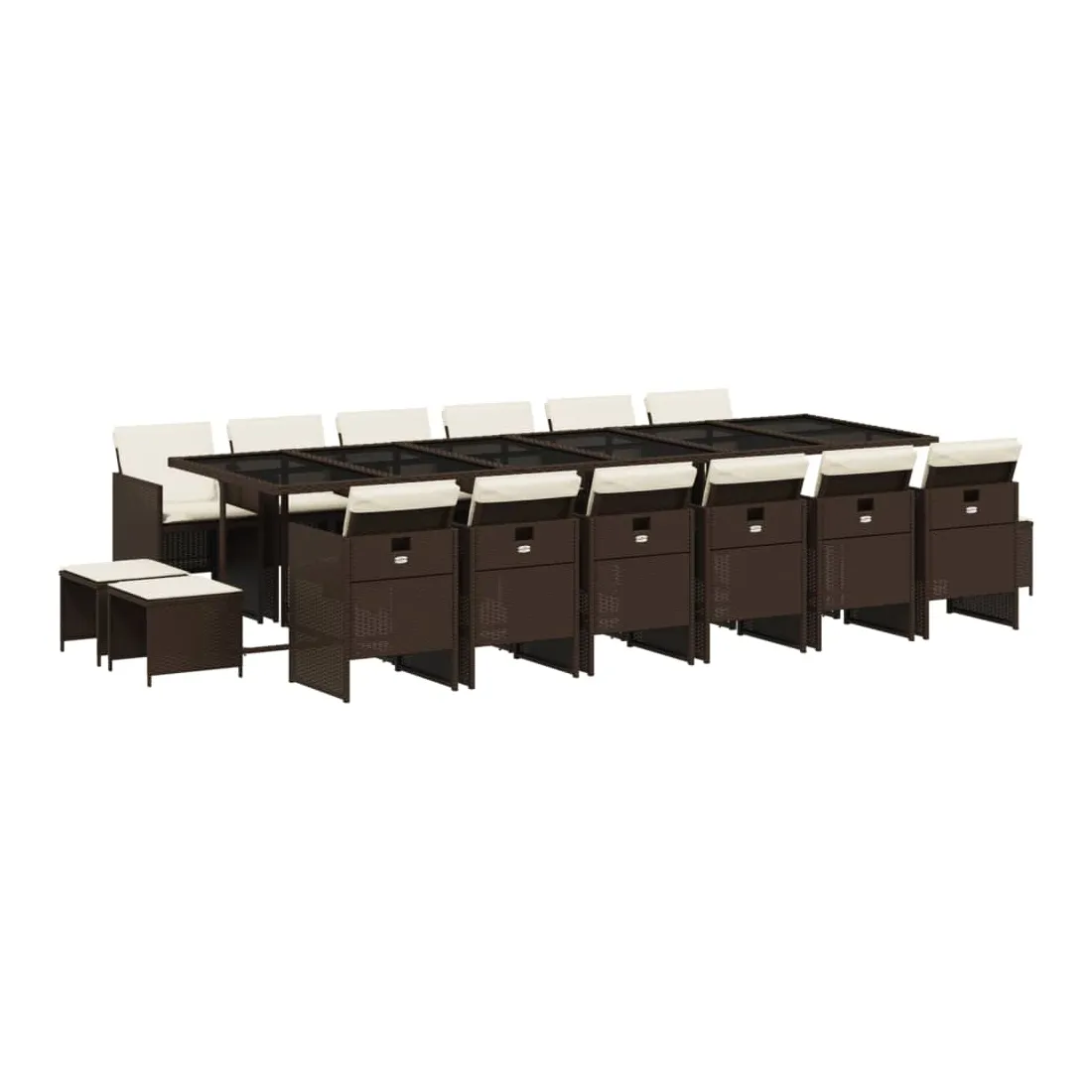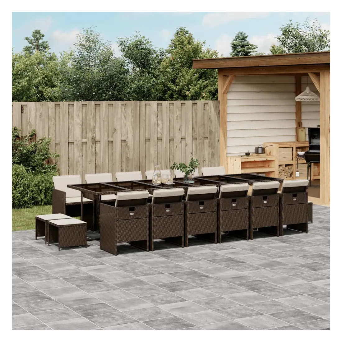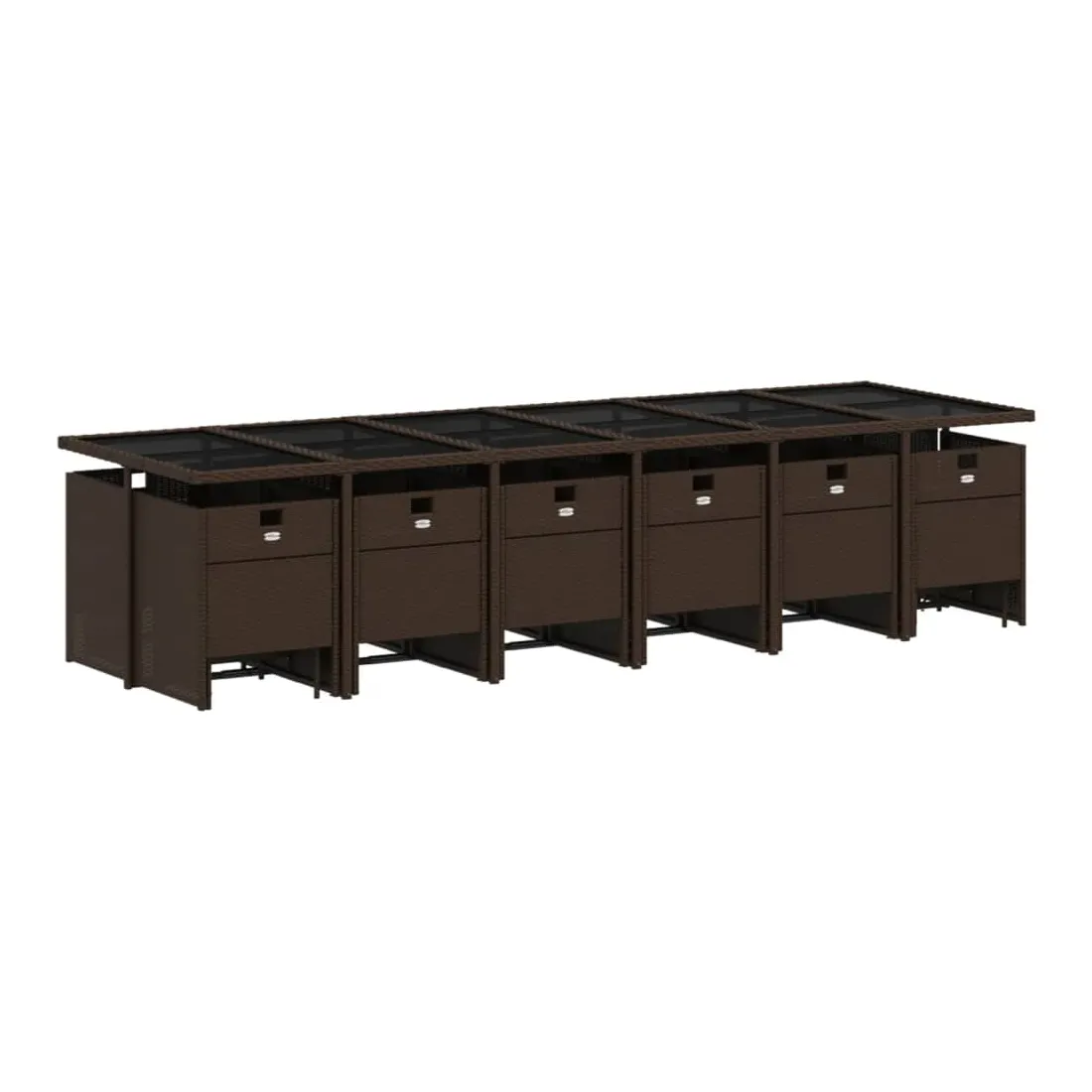 Cet ensemble de salle à manger de jardin est un excellent choix pour les repas en plein air ou pour vous détendre dans le jardin, dans l'arrière-cour ou sur la terrasse. Matériau durable : la résine tressée, également connue sous le nom de poly rotin, est un matériau synthétique solide et nécessitant peu d'entretien qui ressemble au rotin naturel. Il est léger, facile à nettoyer et couramment utilisé pour les meubles d'extérieur en raison de sa durabilité et de ses propriétés de résistance aux intempéries.Rangement compact : ces chaises sont dotées d'un dossier rabattable, ce qui permet de les ranger facilement sous la table. Une fois pliées, elles se rangent parfaitement sous la table, formant un cube peu encombrant. De plus, les tabourets peuvent également être rangés sous les chaises, maximisant encore davantage l'efficacité de l'espace. Expérience d'assise confortable : ce mobilier d'extérieur, doté de coussins épais, offre une expérience d'assise confortable.Housse amovible et lavable : ces coussins de siège sont dotés de housses amovibles pour un lavage et un entretien faciles.Dessus en verre : le dessus de la table d'extérieur est fabriqué en verre trempé solide et durable, ce qui le rend facile à nettoyer avec un chiffon humide et ajoute une touche d'élégance à votre espace extérieur. Bon à savoir : Pour que vos meubles d'extérieur restent beaux, nous vous recommandons de les protéger avec une housse imperméable.