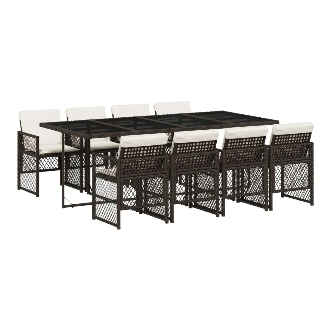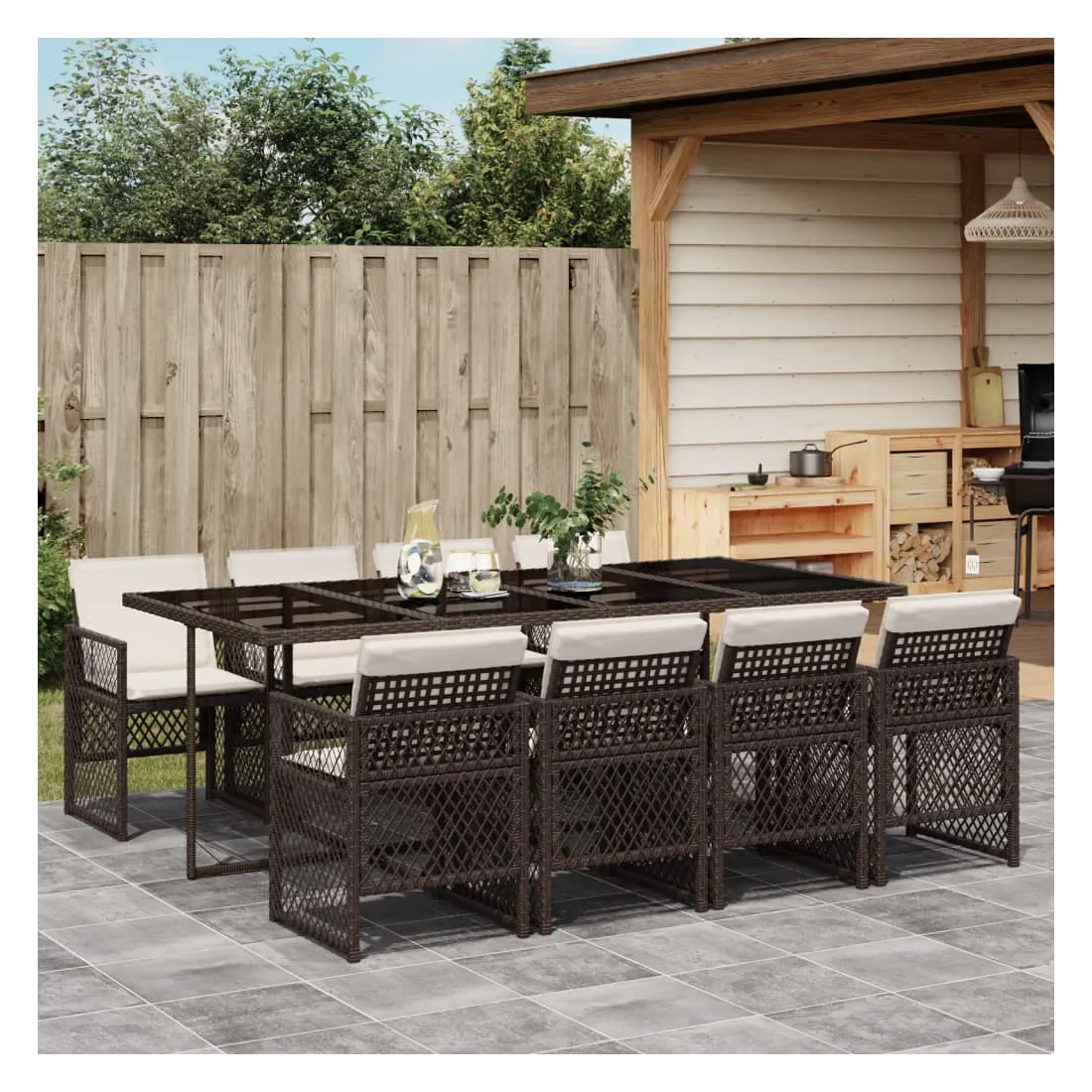 Cet ensemble de salle à manger de jardin est un excellent choix pour les repas en plein air ou pour vous détendre dans le jardin, l'arrière-cour ou le patio. Matériau durable : la résine tressée, également connue sous le nom de poly rotin, est un matériau synthétique solide et nécessitant peu d'entretien qui ressemble au rotin naturel. Elle est légère, facile à nettoyer et couramment utilisée pour les meubles d'extérieur en raison de sa durabilité et de ses propriétés de résistance aux intempéries. Dessus en verre : le dessus de la table d'extérieur est fabriqué en verre trempé solide et durable, ce qui le rend facile à nettoyer avec un chiffon humide et ajoute une touche d'élégance à votre espace extérieur. Rangement compact : ces chaises sont dotées d'un dossier rabattable, ce qui permet de les ranger facilement sous la table. Une fois pliées, elles se rangent parfaitement sous la table, formant un cube peu encombrant. Expérience d'assise confortable : ce mobilier d'extérieur, doté de coussins épais, offre une expérience d'assise confortable. Housse amovible et lavable : ces coussins de siège sont dotés de housses amovibles pour un lavage et un entretien faciles. Les housses de coussin de chaise ont un rabat à l'arrière pour une fixation facile aux chaises. Bon à savoir :Pour que vos meubles d'extérieur restent beaux, nous vous recommandons de les protéger avec une housse imperméable.