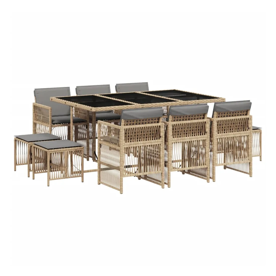 Cet ensemble de salle à manger de jardin est un excellent choix pour les repas en plein air ou pour vous détendre dans le jardin, dans l'arrière-cour ou sur la terrasse. Matériau durable : la résine tressée, également connue sous le nom de poly rotin, est un matériau synthétique solide et nécessitant peu d'entretien qui ressemble au rotin naturel. Il est léger, facile à nettoyer et couramment utilisé pour les meubles d'extérieur en raison de sa durabilité et de ses propriétés de résistance aux intempéries.Rangement compact : ces chaises sont dotées d'un dossier rabattable, ce qui permet de les ranger facilement sous la table. Une fois pliées, elles se rangent parfaitement sous la table, formant un cube peu encombrant. De plus, les tabourets peuvent également être rangés sous les chaises, maximisant encore davantage l'efficacité de l'espace.Expérience d'assise confortable : ce mobilier d'extérieur, doté de coussins épais, offre une expérience d'assise confortable.Housse amovible et lavable : ces coussins sont dotés de housses amovibles pour un lavage et un entretien faciles. Les housses de coussin ont un rabat à l'arrière pour une fixation facile aux dossiers.Dessus en verre : le dessus de la table d'extérieur est fabriqué en verre trempé solide et durable, ce qui le rend facile à nettoyer avec un chiffon humide et ajoute une touche d'élégance à votre espace extérieur. Bon à savoir : Pour que vos meubles d'extérieur restent beaux, nous vous recommandons de les protéger avec une housse imperméable.