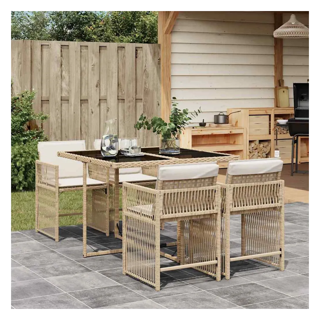 Cet ensemble de salle à manger de jardin est un excellent choix pour les repas en plein air ou pour vous détendre dans le jardin, l'arrière-cour ou le patio. Matériau durable : la résine tressée, également connue sous le nom de poly rotin, est un matériau synthétique solide et nécessitant peu d'entretien qui ressemble au rotin naturel. Il est léger, facile à nettoyer et couramment utilisé pour les meubles d'extérieur en raison de sa durabilité et de ses propriétés de résistance aux intempéries.Rangement compact : ces chaises sont dotées d'un dossier rabattable, ce qui permet de les ranger facilement sous la table. Une fois pliées, elles se rangent parfaitement sous la table, formant un cube peu encombrant.Expérience d'assise confortable : ce mobilier d'extérieur, doté de coussins épais, offre une expérience d'assise confortable.Housse amovible et lavable : ces coussins de siège sont dotés de housses amovibles pour un lavage et un entretien faciles. Les housses de coussin ont un rabat à l'arrière pour une fixation facile aux dossiers.Dessus en verre : le dessus de la table d'extérieur est fabriqué en verre trempé solide et durable, ce qui le rend facile à nettoyer avec un chiffon humide et ajoute une touche d'élégance à votre espace extérieur. Bon à savoir :Pour que vos meubles d'extérieur restent beaux, nous vous recommandons de les protéger avec une housse imperméable.