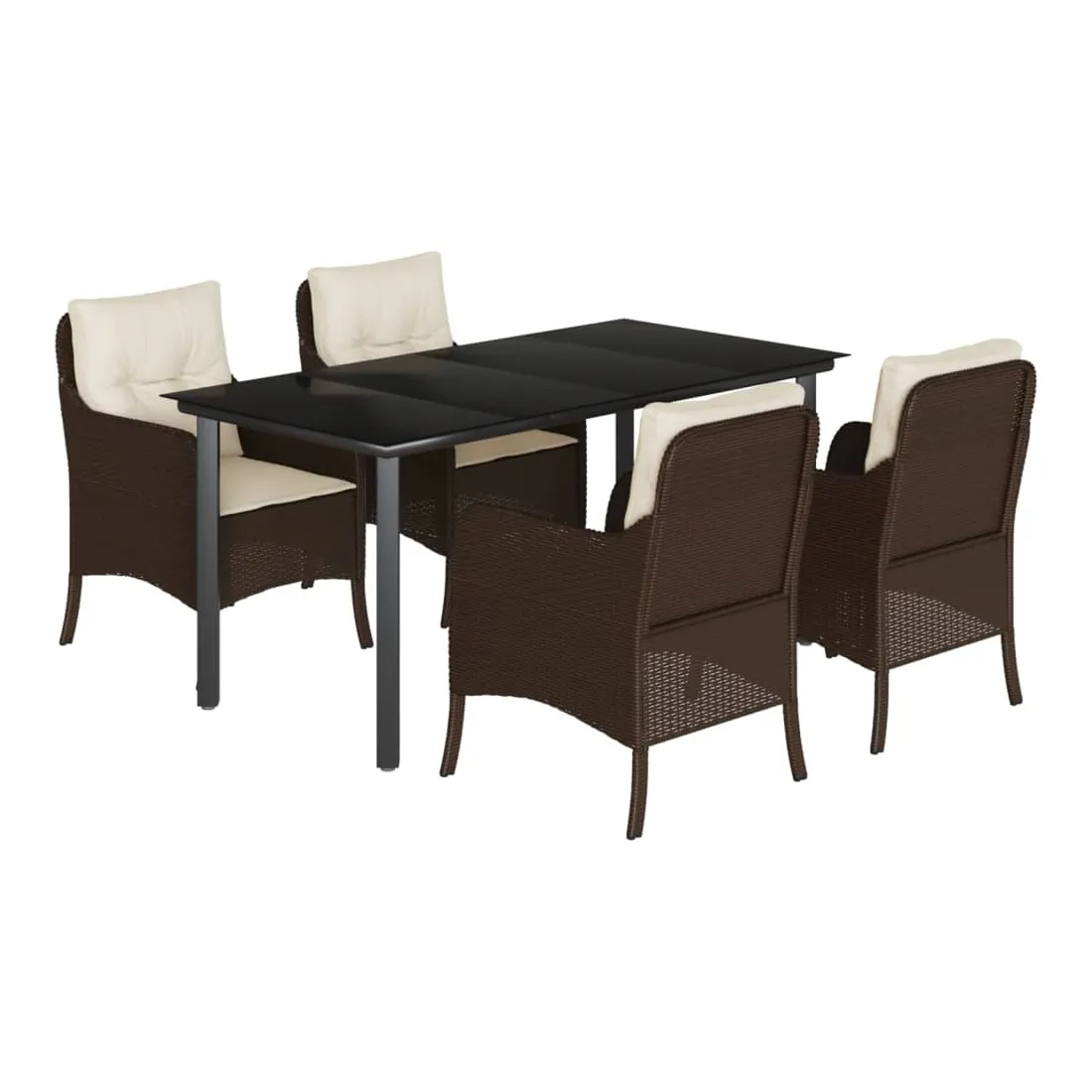 Cet ensemble de salle à manger de jardin est un excellent choix pour les repas en plein air ou pour vous détendre dans le jardin, l'arrière-cour ou le patio. Matériau durable : la résine tressée, également connue sous le nom de poly rotin, est un matériau synthétique solide et nécessitant peu d'entretien qui ressemble au rotin naturel. Il est léger, facile à nettoyer et couramment utilisé pour les meubles d'extérieur en raison de sa durabilité et de ses propriétés de résistance aux intempéries.Expérience d'assise confortable : ce mobilier d'extérieur, doté de coussins épais, offre une expérience d'assise confortable.Housse amovible et lavable : ces coussins de siège sont dotés de housses amovibles pour un lavage et un entretien faciles.Dessus en verre : le dessus de la table d'extérieur est fabriqué en verre trempé solide et durable, ce qui le rend facile à nettoyer avec un chiffon humide et ajoute une touche d'élégance à votre espace extérieur.Cadre robuste et stable : le cadre en acier enduit de poudre assure la solidité et la stabilité du meuble de jardin pour une utilisation quotidienne à l'extérieur. Bon à savoir :Pour que vos meubles d'extérieur restent beaux, nous vous recommandons de les protéger avec une housse imperméable.