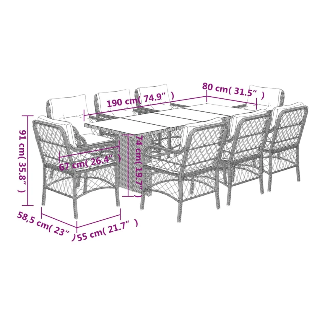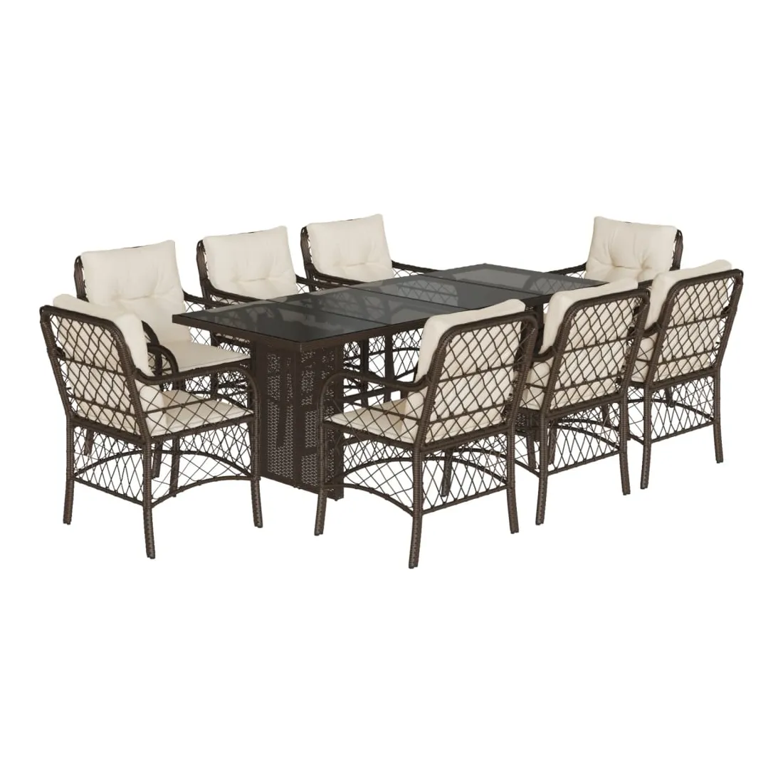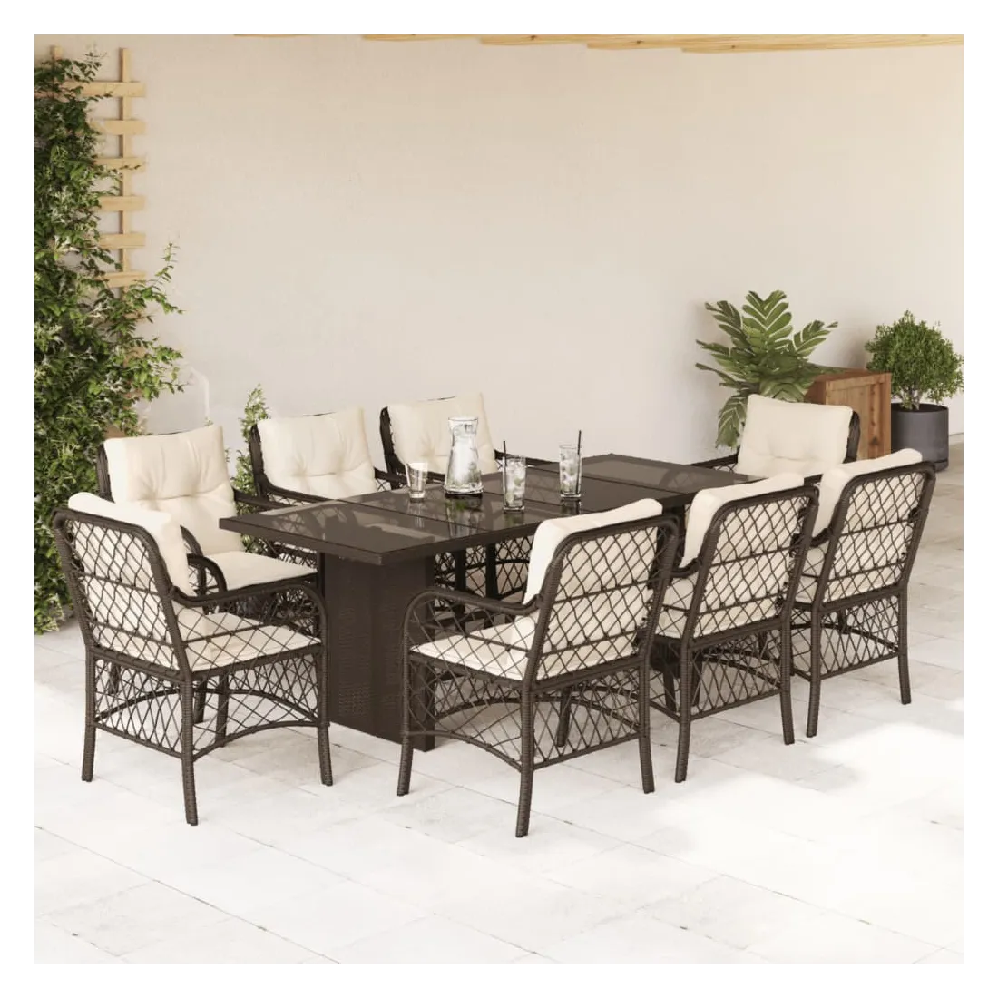 Cet ensemble de salle à manger de jardin est un excellent choix pour les repas en plein air ou pour vous détendre dans le jardin, l'arrière-cour ou le patio. Matériau durable : la résine tressée, également connue sous le nom de poly rotin, est un matériau synthétique solide et nécessitant peu d'entretien qui ressemble au rotin naturel. Il est léger, facile à nettoyer et couramment utilisé pour les meubles d'extérieur en raison de sa durabilité et de ses propriétés de résistance aux intempéries.Expérience d'assise confortable : ce mobilier d'extérieur, doté de coussins épais, offre une expérience d'assise confortable.Housse amovible et lavable : ces coussins de siège sont dotés de housses amovibles pour un lavage et un entretien faciles.Dessus en verre : le dessus de la table d'extérieur est fabriqué en verre trempé solide et durable, ce qui le rend facile à nettoyer avec un chiffon humide et ajoute une touche d'élégance à votre espace extérieur.Cadre robuste et stable : le cadre en acier enduit de poudre assure la solidité et la stabilité du meuble de jardin pour une utilisation quotidienne à l'extérieur. Bon à savoir :Pour que vos meubles d'extérieur restent beaux, nous vous recommandons de les protéger avec une housse imperméable.