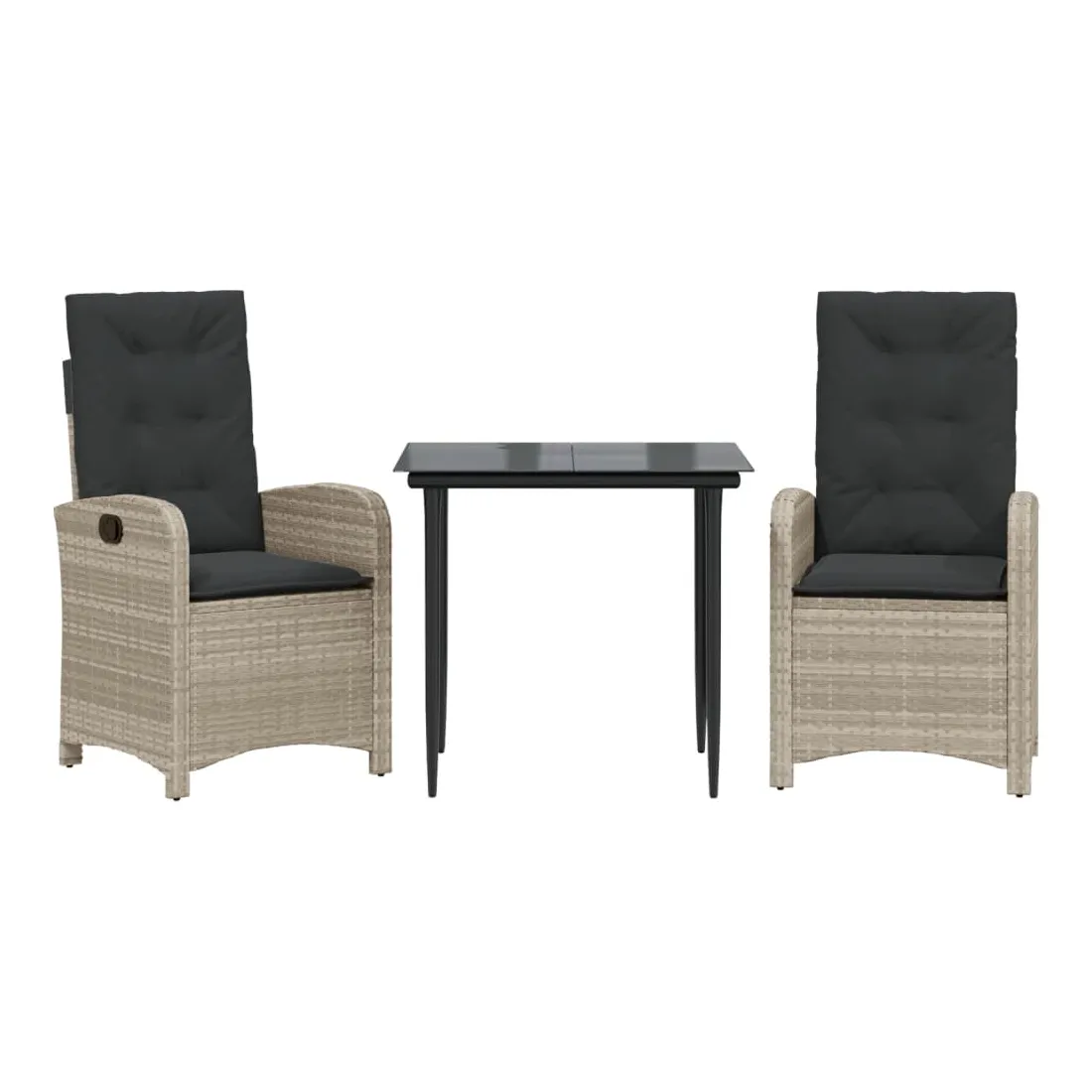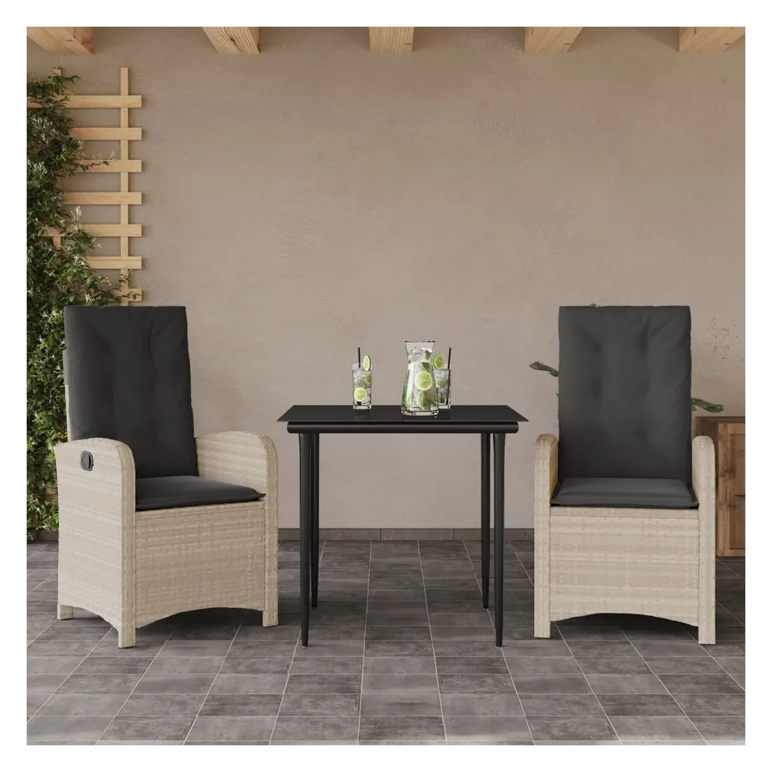 Cet ensemble de salle à manger de jardin est un excellent choix pour les repas en plein air ou pour vous détendre dans le jardin, dans l'arrière-cour ou sur la terrasse. Matériau durable : la résine tressée, également connue sous le nom de poly rotin, est un matériau synthétique solide et nécessitant peu d'entretien qui ressemble au rotin naturel. Il est léger, facile à nettoyer et couramment utilisé pour les meubles d'extérieur en raison de sa durabilité et de ses propriétés de résistance aux intempéries.Dossier réglable : ce siège de jardin est doté d'une poignée. Vous pouvez régler le dossier dans n'importe quelle position en tirant sur la poignée et le remettre rapidement dans sa position initiale.Expérience d'assise confortable : ce mobilier d'extérieur, doté de coussins épais, offre une expérience d'assise confortable.Housse amovible et lavable : ces coussins de siège sont dotés de housses amovibles pour un lavage et un entretien faciles. Les coussins de dossier ont un rabat à l'arrière pour une fixation facile aux dossiers.Dessus en verre : le dessus de la table d'extérieur est fabriqué en verre trempé solide et durable, ce qui le rend facile à nettoyer avec un chiffon humide et ajoute une touche d'élégance à votre espace extérieur. Bon à savoir :Pour que vos meubles d'extérieur restent beaux, nous vous recommandons de les protéger avec une housse imperméable.