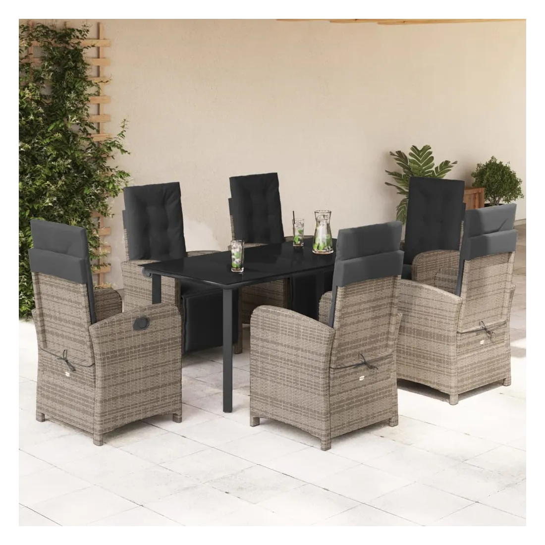Savourez une tasse de café ou discutez avec votre famille et vos amis dans le jardin, l'arrière-cour ou sur le balcon avec cet ensemble de salle à manger de jardin confortable ! Matériau durable : la résine tressée, également connue sous le nom de poly rotin, est un matériau synthétique solide et nécessitant peu d'entretien qui ressemble au rotin naturel. Il est léger, facile à nettoyer et couramment utilisé pour les meubles d'extérieur en raison de sa durabilité et de ses propriétés de résistance aux intempéries.Dossier et repose-pied réglables : ce siège de jardin est doté d'une poignée. Vous pouvez régler le dossier et le repose-pied dans n'importe quelle position en tirant sur la poignée, et les remettre rapidement dans leur position initiale.Expérience d'assise confortable : ce mobilier d'extérieur, doté de coussins épais, offre une expérience d'assise confortable.Housse amovible et lavable : ces coussins de siège sont dotés de housses amovibles pour un lavage et un entretien faciles. Les coussins de dossier ont un rabat à l'arrière pour une fixation facile aux dossiers.Dessus en verre : le dessus de la table d'extérieur est fabriqué en verre trempé solide et durable, ce qui le rend facile à nettoyer avec un chiffon humide et ajoute une touche d'élégance à votre espace extérieur. Bon à savoir :Pour que vos meubles d'extérieur restent beaux, nous vous recommandons de les protéger avec une housse imperméable.