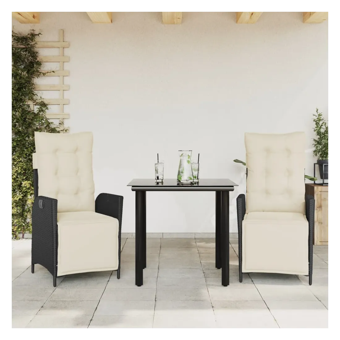 Cet ensemble de salle à manger de jardin est un excellent choix pour les repas en plein air ou pour vous détendre dans le jardin, l'arrière-cour ou le patio. Matériau durable : la résine tressée, également connue sous le nom de poly rotin, est un matériau synthétique solide et nécessitant peu d'entretien qui ressemble au rotin naturel. Il est léger, facile à nettoyer et couramment utilisé pour les meubles d'extérieur en raison de sa durabilité et de ses propriétés de résistance aux intempéries.Dossier et repose-pied réglables : ce siège de jardin est doté d'une poignée. Vous pouvez régler le dossier et le repose-pied dans n'importe quelle position en tirant sur la poignée, et les remettre rapidement dans leur position initiale.Expérience d'assise confortable : ce mobilier d'extérieur, doté de coussins épais, offre une expérience d'assise confortable.Housse amovible et lavable : ces coussins de siège sont dotés de housses amovibles pour un lavage et un entretien faciles. Les coussins de dossier ont un rabat à l'arrière pour une fixation facile aux dossiers.Dessus en verre : le dessus de la table d'extérieur est fabriqué en verre trempé solide et durable, ce qui le rend facile à nettoyer avec un chiffon humide et ajoute une touche d'élégance à votre espace extérieur. Bon à savoir :Pour que vos meubles d'extérieur restent beaux, nous vous recommandons de les protéger avec une housse imperméable.