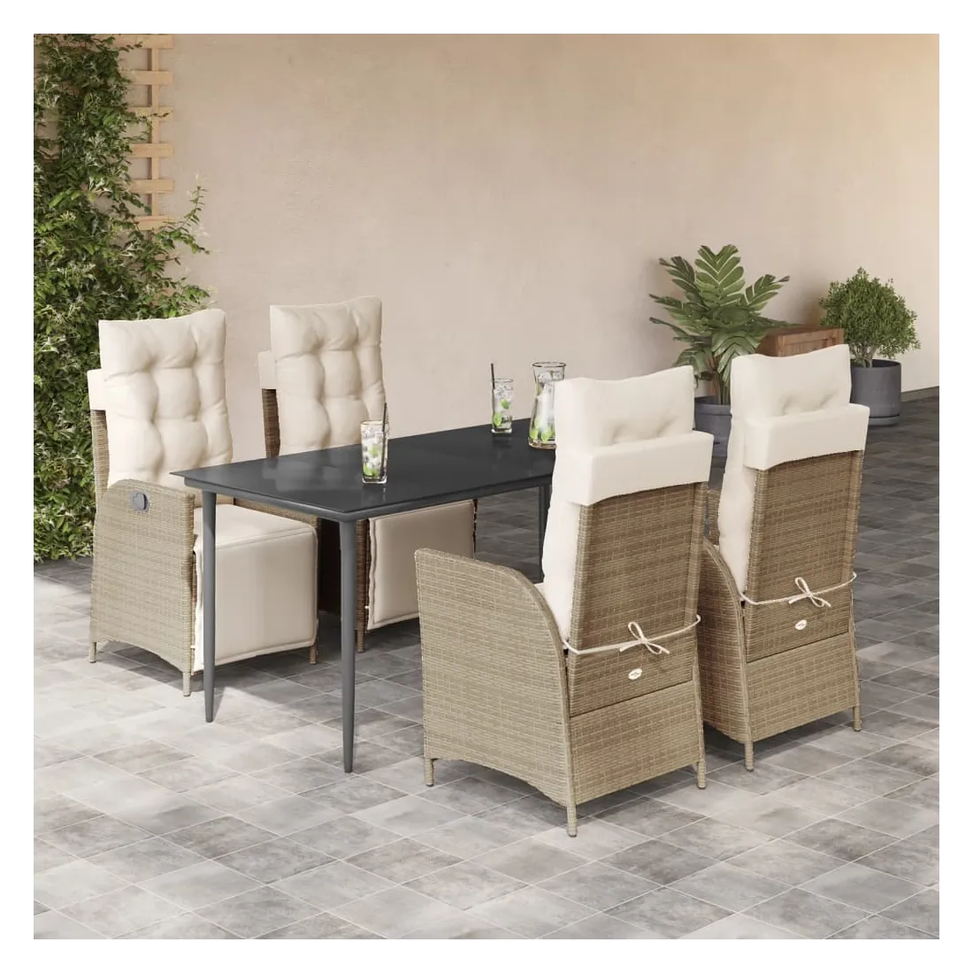 Cet ensemble de salle à manger de jardin est un excellent choix pour les repas en plein air ou pour vous détendre dans le jardin, l'arrière-cour ou le patio. Matériau durable : la résine tressée, également connue sous le nom de poly rotin, est un matériau synthétique solide et nécessitant peu d'entretien qui ressemble au rotin naturel. Il est léger, facile à nettoyer et couramment utilisé pour les meubles d'extérieur en raison de sa durabilité et de ses propriétés de résistance aux intempéries.Dossier et repose-pied réglables : ce siège de jardin est doté d'une poignée. Vous pouvez régler le dossier et le repose-pied dans n'importe quelle position en tirant sur la poignée, et les remettre rapidement dans leur position initiale.Expérience d'assise confortable : ce mobilier d'extérieur, doté de coussins épais, offre une expérience d'assise confortable.Housse amovible et lavable : ces coussins de siège sont dotés de housses amovibles pour un lavage et un entretien faciles. Les coussins de dossier ont un rabat à l'arrière pour une fixation facile aux dossiers.Dessus en verre : le dessus de la table d'extérieur est fabriqué en verre trempé solide et durable, ce qui le rend facile à nettoyer avec un chiffon humide et ajoute une touche d'élégance à votre espace extérieur. Bon à savoir :Pour que vos meubles d'extérieur restent beaux, nous vous recommandons de les protéger avec une housse imperméable.