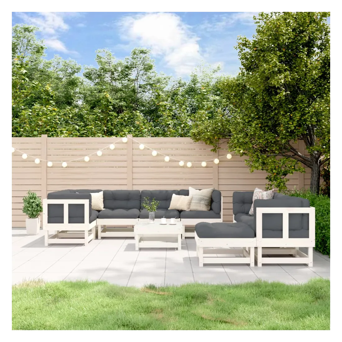 Ce salon de jardin en bois, qui se démarque par son design à lattes, sera un excellent supplément à votre jardin, patio ou terrasse pour profiter d'un moment agréable avec votre famille ou vos amis. Bois de pin massif : le bois de pin massif est un matériau naturel magnifique. Le bois de pin a un grain droit et les nœuds donnent au matériau son aspect caractéristique et rustique.Expérience d'assise confortable : le dossier ajoute un confort d'assise supplémentaire à l'ensemble de salon.Design modulaire : le canapé est flexible et facile à déplacer. Vous pouvez le combiner avec d'autres segments modulaires de la boutique en ligne pour créer vos propres configurations de salon de jardin ! Bon à savoir :Les coussins ne sont pas inclus.Pour que vos meubles d'extérieur restent beaux, nous vous recommandons de les protéger avec une housse imperméable.