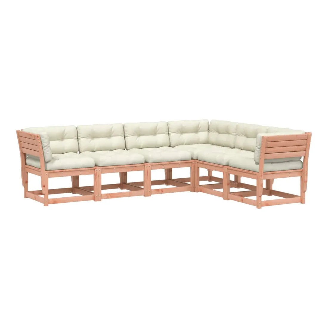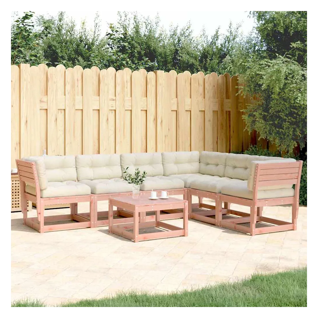 Cet ensemble de canapés de jardin est le complément parfait de votre arrière-cour, terrasse ou patio, offrant un espace confortable et accueillant pour discuter avec la famille et les amis ou simplement se détendre et profiter de l'extérieur. Bois de douglas massif : le bois de douglas massif est un bois très durable qui fonctionne bien pour l'extérieur. Le bois de douglas est également suffisamment solide pour être travaillé avec un minimum de soin, même sous l'influence des intempéries.Expérience d'assise confortable : ce mobilier d'extérieur, doté de dossiers et de coussin épais rembourré, offre une expérience d'assise confortable.Conception à lattes : la conception à lattes du canapé d'extérieur empêche efficacement l'eau de s'accumuler, ce qui garantit que l'assise reste sèche et exempte de tout risque de pourriture.Conception modulaire : cet ensemble de meubles d'extérieur a une conception modulaire, ce qui le rend complètement flexible et facile à déplacer, afin que vous puissiez créer un agencement de meubles d'extérieur personnalisé. Bon à savoir :Pour que vos meubles d'extérieur restent beaux, nous vous recommandons de les protéger avec une housse imperméable.