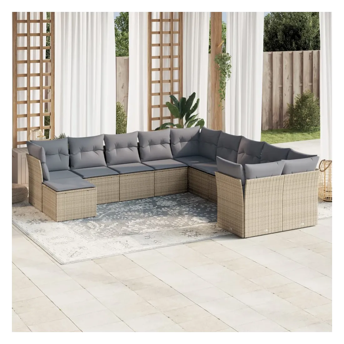 Cet ensemble de canapés de jardin est le complément parfait de votre arrière-cour, terrasse ou patio, offrant un espace confortable et accueillant pour discuter avec la famille et les amis ou simplement se détendre et profiter de l'extérieur. Matériau durable : la résine tressée, également connue sous le nom de poly rotin, est un matériau synthétique solide et nécessitant peu d'entretien qui ressemble au rotin naturel. Il est léger, facile à nettoyer et couramment utilisé pour les meubles d'extérieur en raison de sa durabilité et de ses propriétés de résistance aux intempéries.Expérience d'assise confortable : ce mobilier d'extérieur, doté de coussins épais, offre une expérience d'assise confortable.Housse amovible et lavable : ces coussins de siège sont dotés de housses amovibles pour un lavage et un entretien faciles.Conception modulaire : cet ensemble de meubles d'extérieur a une conception modulaire, ce qui le rend complètement flexible et facile à déplacer, afin que vous puissiez créer un agencement de meubles d'extérieur personnalisé. Bon à savoir :Pour que vos meubles d'extérieur restent beaux, nous vous recommandons de les protéger avec une housse imperméable.
