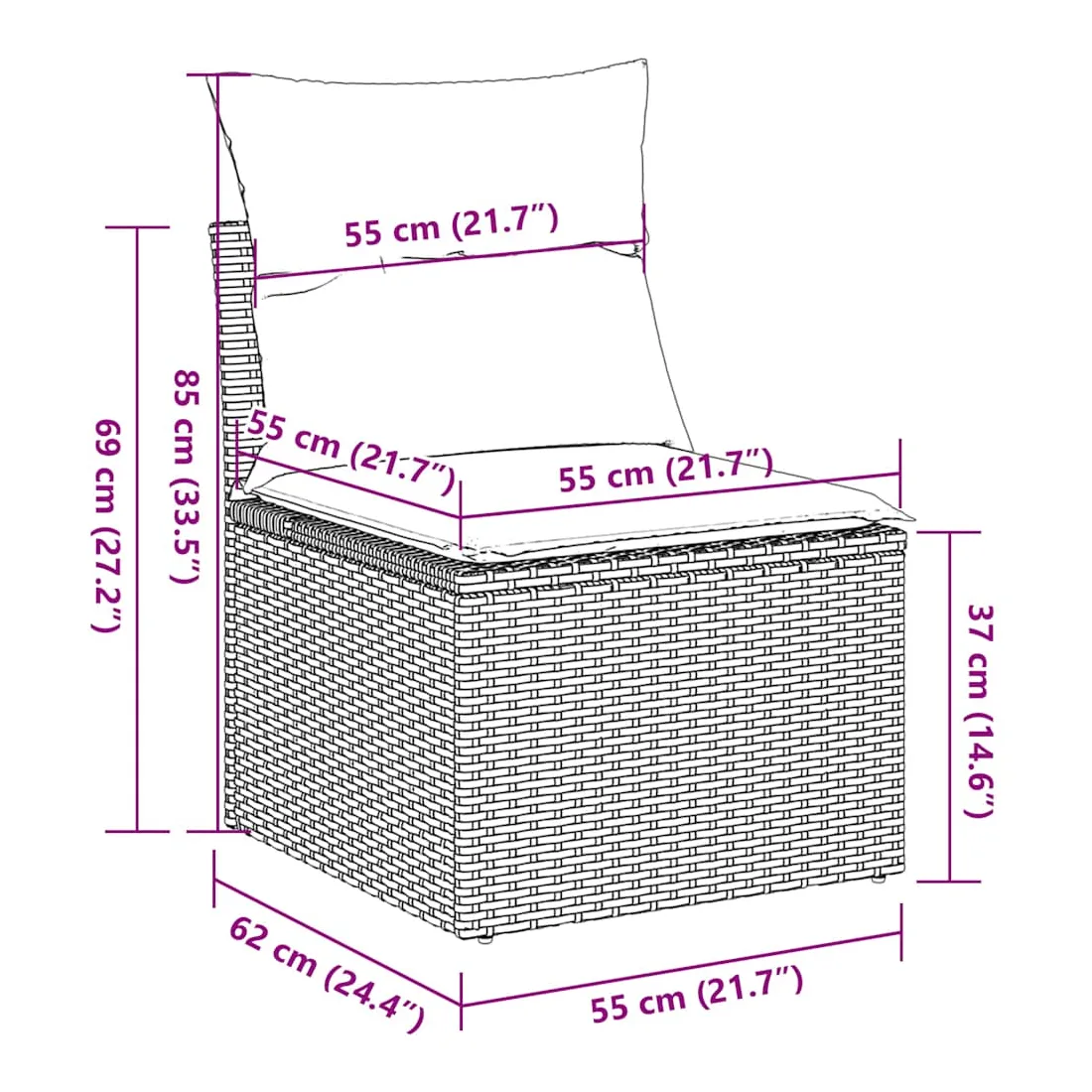 - Dimensions du coussin de siège : 55 x 55 x 3 cm (l x P x é)