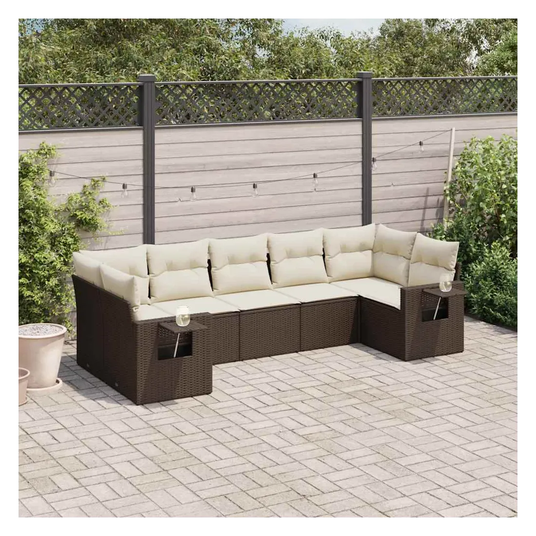 Cet ensemble de canapés de jardin est le complément parfait de votre arrière-cour, terrasse ou patio, offrant un espace confortable et accueillant pour discuter avec la famille et les amis ou simplement se détendre et profiter de l'extérieur. Matériau durable : la résine tressée, également connue sous le nom de poly rotin, est un matériau synthétique solide et nécessitant peu d'entretien qui ressemble au rotin naturel. Il est léger, facile à nettoyer et couramment utilisé pour les meubles d'extérieur en raison de sa durabilité et de ses propriétés de résistance aux intempéries. Table d'appoint pratique : ce mobilier d'extérieur comprend des tables d'appoint pliables avec un ressort à gaz sur les accoudoirs, offrant des endroits pratiques pour garder vos essentiels à portée de main. Expérience d'assise confortable : ce mobilier d'extérieur, doté de coussins épais, offre une expérience d'assise confortable. Housse amovible et lavable : ces coussins de siège sont dotés de housses amovibles pour un lavage et un entretien faciles.Conception modulaire : cet ensemble de meubles d'extérieur a une conception modulaire, ce qui le rend complètement flexible et facile à déplacer, afin que vous puissiez créer un agencement de meubles d'extérieur personnalisé. Bon à savoir :Pour que vos meubles d'extérieur restent beaux, nous vous recommandons de les protéger avec une housse imperméable.