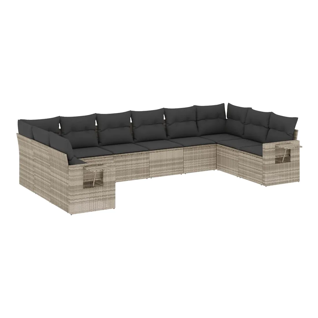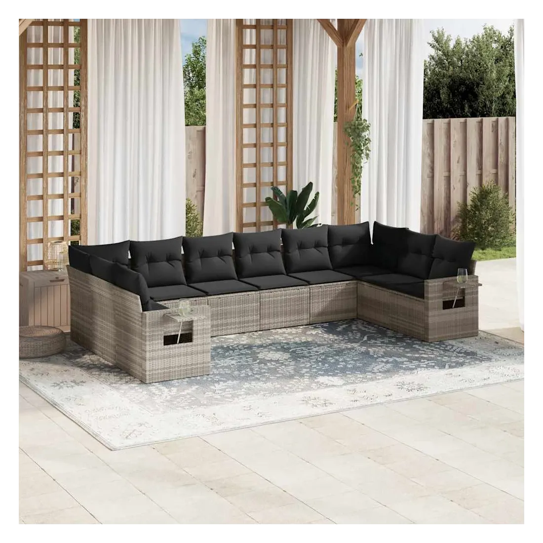 Cet ensemble de canapés de jardin est le complément parfait de votre arrière-cour, terrasse ou patio, offrant un espace confortable et accueillant pour discuter avec la famille et les amis ou simplement se détendre et profiter de l'extérieur. Matériau durable : la résine tressée, également connue sous le nom de poly rotin, est un matériau synthétique solide et nécessitant peu d'entretien qui ressemble au rotin naturel. Il est léger, facile à nettoyer et couramment utilisé pour les meubles d'extérieur en raison de sa durabilité et de ses propriétés de résistance aux intempéries. Table d'appoint pratique : ce mobilier d'extérieur comprend des tables d'appoint pliables avec un ressort à gaz sur les accoudoirs, offrant des endroits pratiques pour garder vos essentiels à portée de main. Expérience d'assise confortable : ce mobilier d'extérieur, doté de coussins épais, offre une expérience d'assise confortable.Housse amovible et lavable : ces coussins de siège sont dotés de housses amovibles pour un lavage et un entretien faciles.Conception modulaire : cet ensemble de meubles d'extérieur a une conception modulaire, ce qui le rend complètement flexible et facile à déplacer, afin que vous puissiez créer un agencement de meubles d'extérieur personnalisé. Bon à savoir :Pour que vos meubles d'extérieur restent beaux, nous vous recommandons de les protéger avec une housse imperméable.