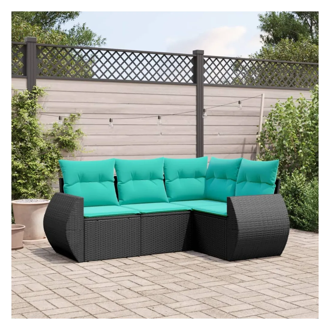 Cet ensemble de canapés de jardin est le complément parfait de votre arrière-cour, terrasse ou patio, offrant un espace confortable et accueillant pour discuter avec la famille et les amis ou simplement se détendre et profiter de l'extérieur. Matériau durable : la résine tressée, également connue sous le nom de poly rotin, est un matériau synthétique solide et nécessitant peu d'entretien qui ressemble au rotin naturel. Elle est légère, facile à nettoyer et couramment utilisée pour les meubles d'extérieur en raison de sa durabilité et de ses propriétés de résistance aux intempéries. Expérience d'assise confortable : ce mobilier d'extérieur, doté de coussins épais, offre une expérience d'assise confortable.Housse amovible et lavable : ces coussins de siège sont dotés de housses amovibles pour un lavage et un entretien faciles.Conception modulaire : cet ensemble de meubles d'extérieur a une conception modulaire, ce qui le rend complètement flexible et facile à déplacer, afin que vous puissiez créer un agencement de meubles d'extérieur personnalisé.Cadre robuste et stable : le cadre en acier enduit de poudre assure la solidité et la stabilité du meuble de jardin pour une utilisation quotidienne à l'extérieur. Bon à savoir :Pour que vos meubles d'extérieur restent beaux, nous vous recommandons de les protéger avec une housse imperméable.