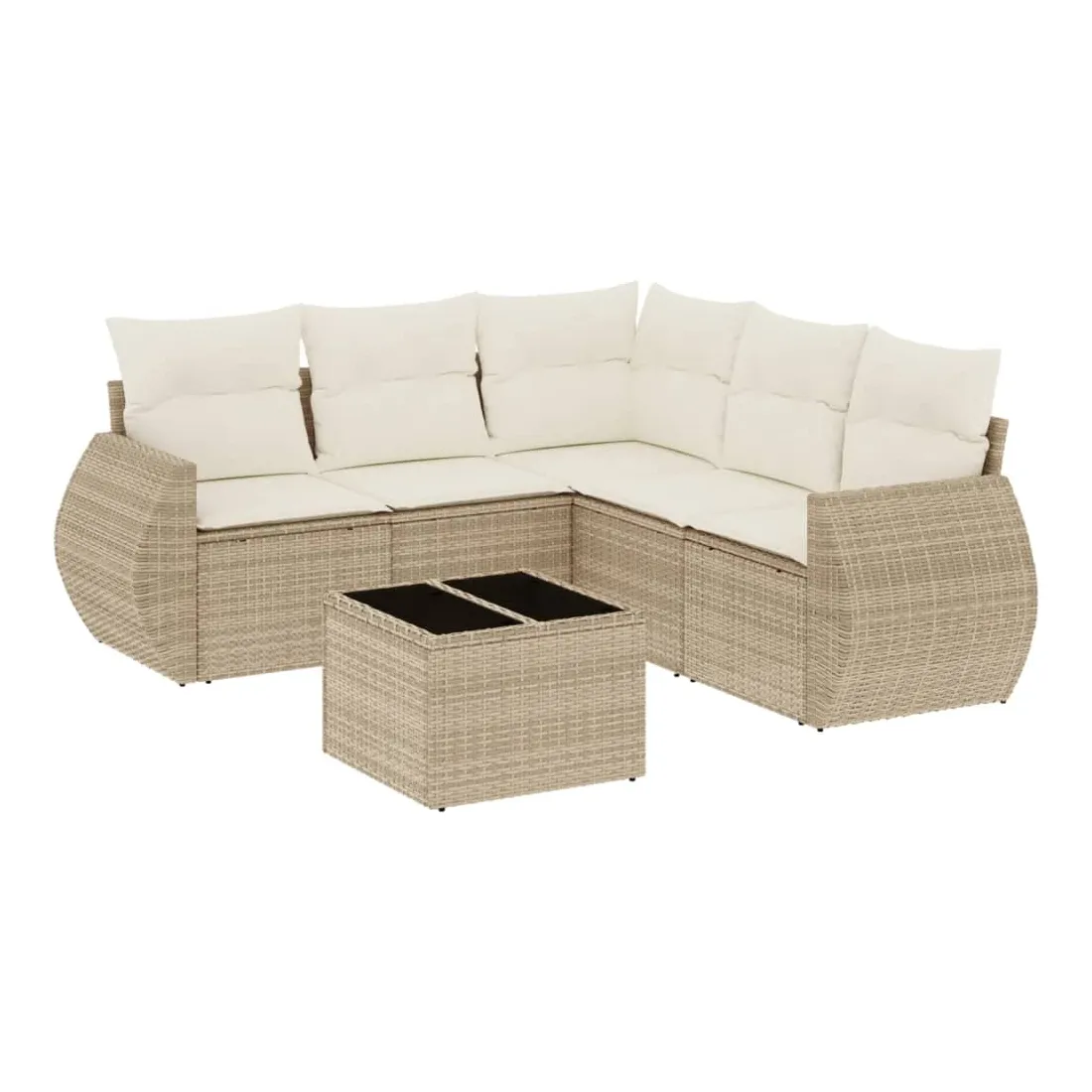 Salon de jardin avec coussins 6 pcs beige résine tressée